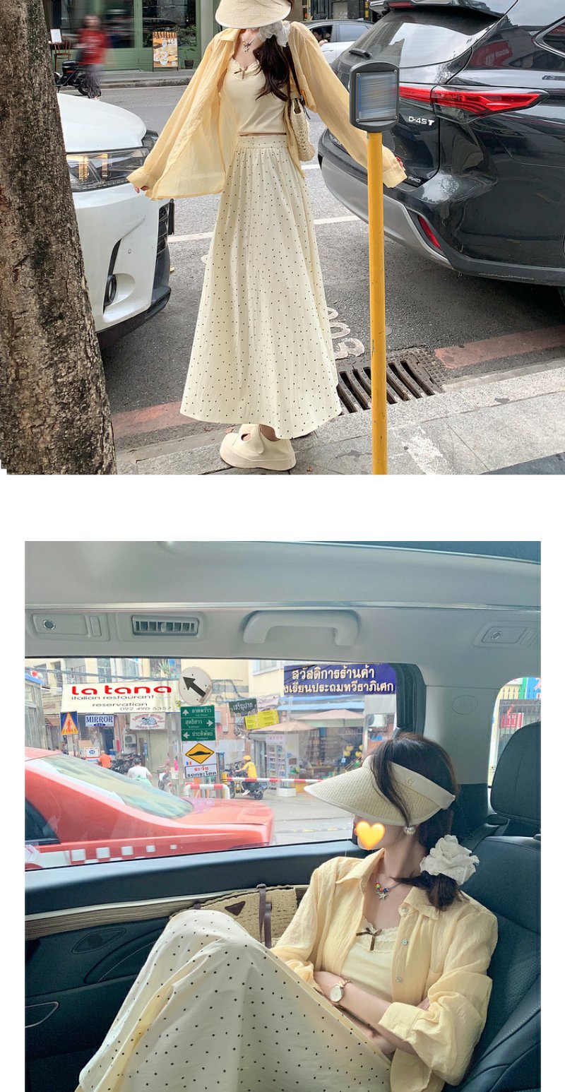 <曾小咸推荐>【韩女氛围】背心+衬衫+波点半身裙