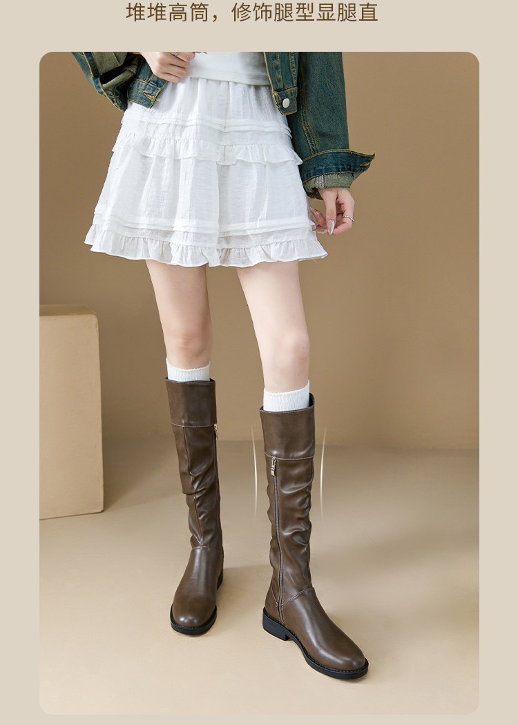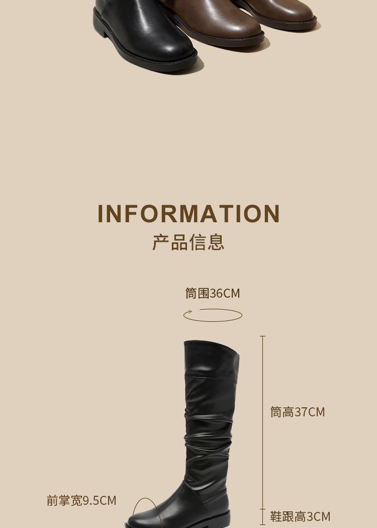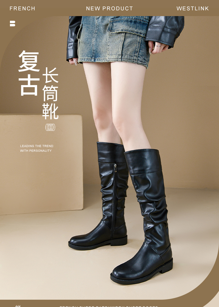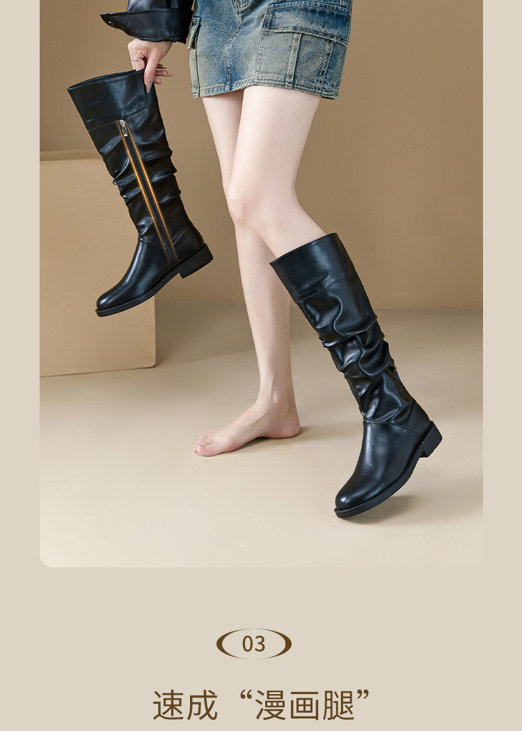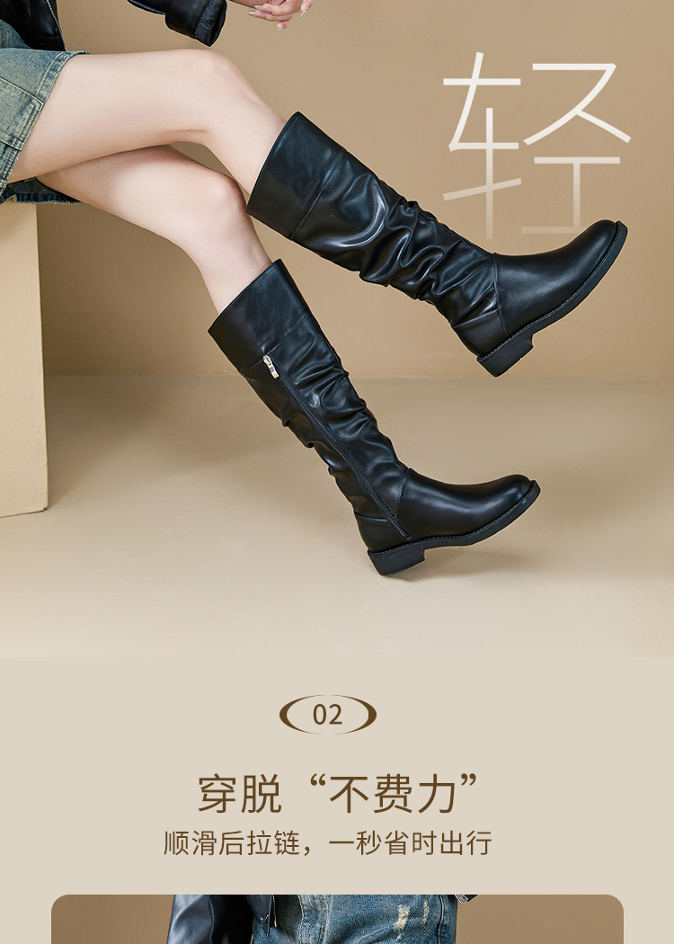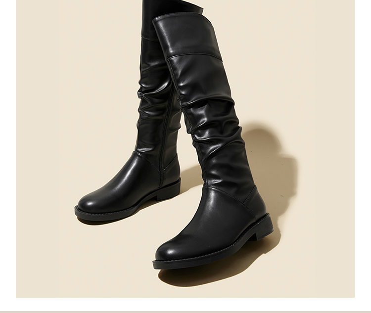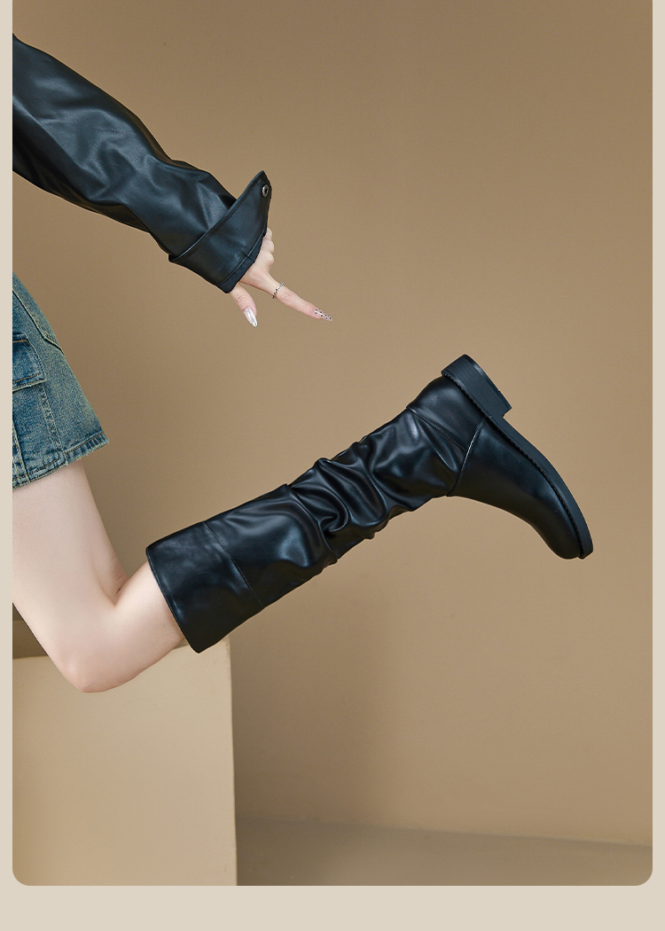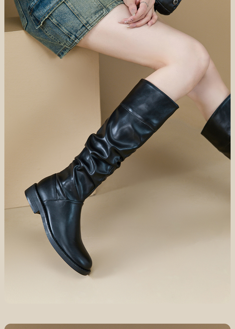 西遇褶皱堆堆靴女新款秋冬高级感黑色高筒长靴不过膝长筒靴D3547669