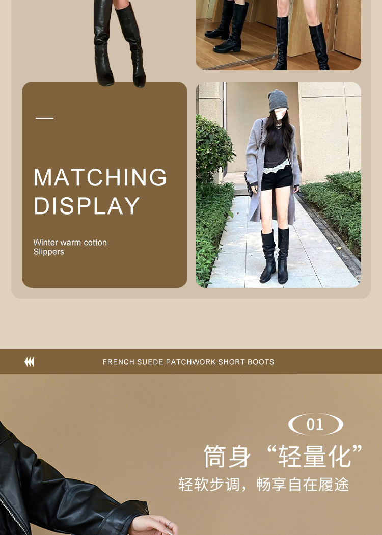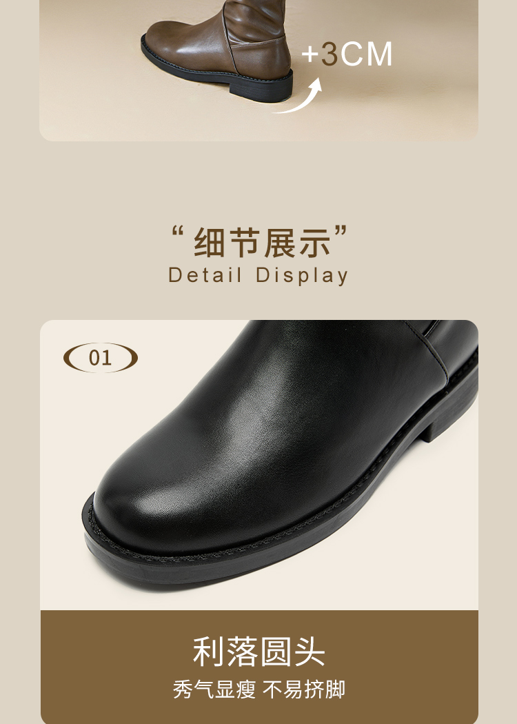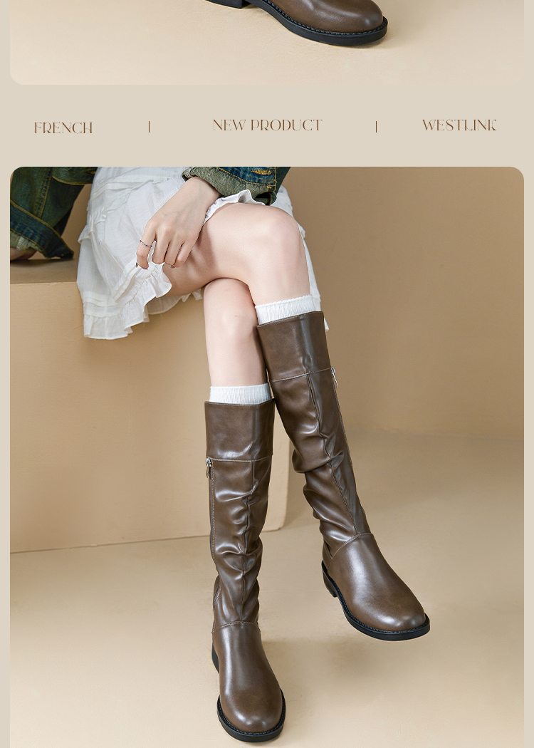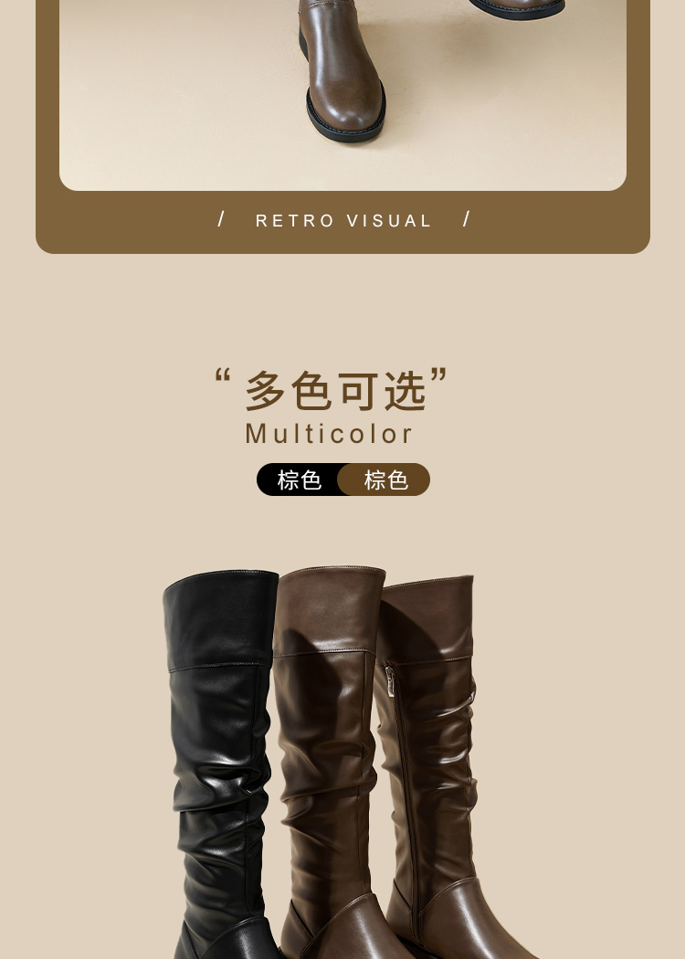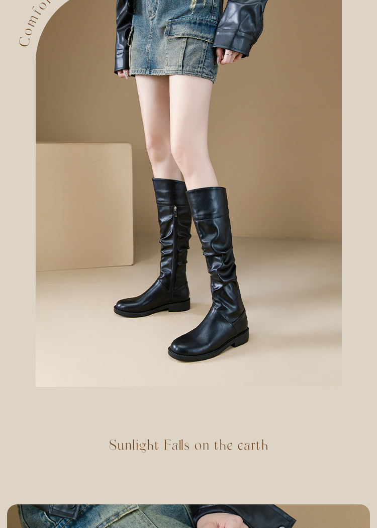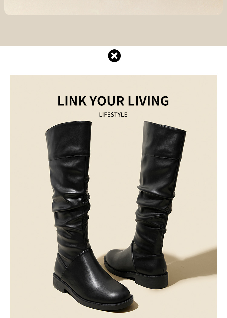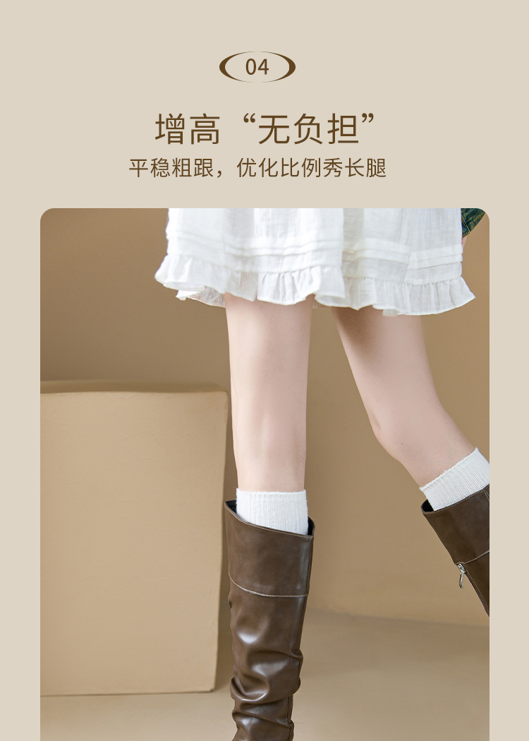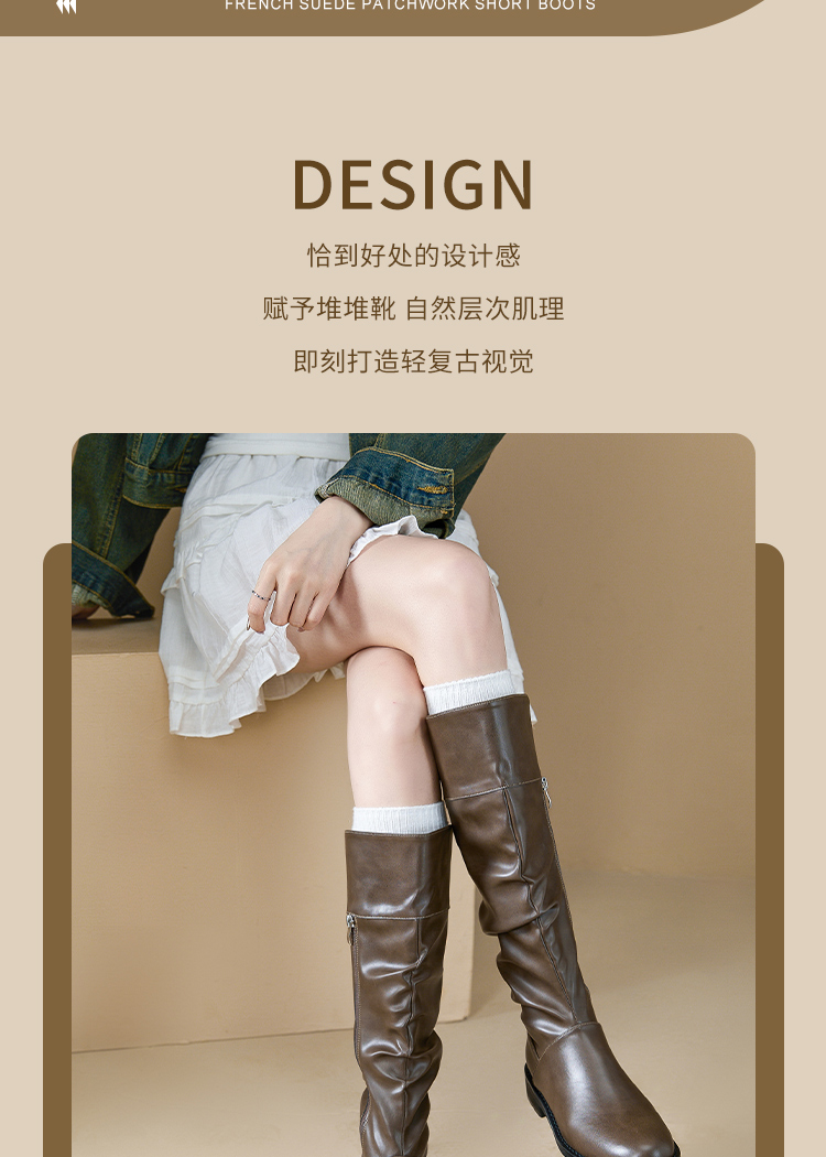 西遇褶皱堆堆靴女新款秋冬高级感黑色高筒长靴不过膝长筒靴D3547669