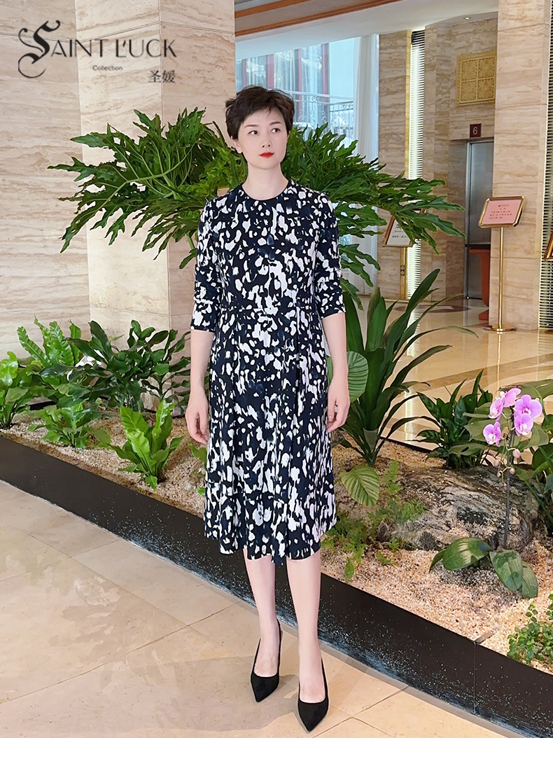 SAINT L’UCK/圣媛女装秋季中长款花色圆领连衣裙SA319L51