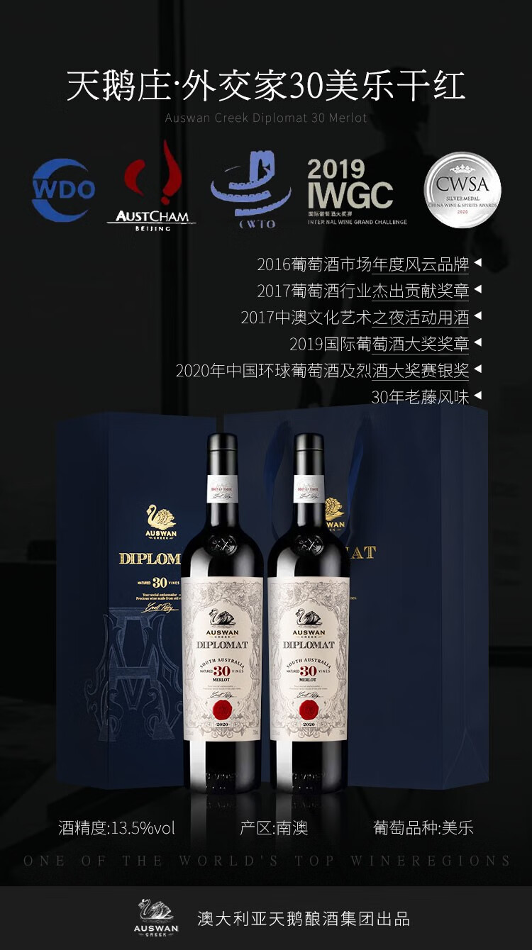 【前澳驻华大使推荐】天鹅庄南澳外交家系列干红葡萄酒 澳大利亚国会用酒