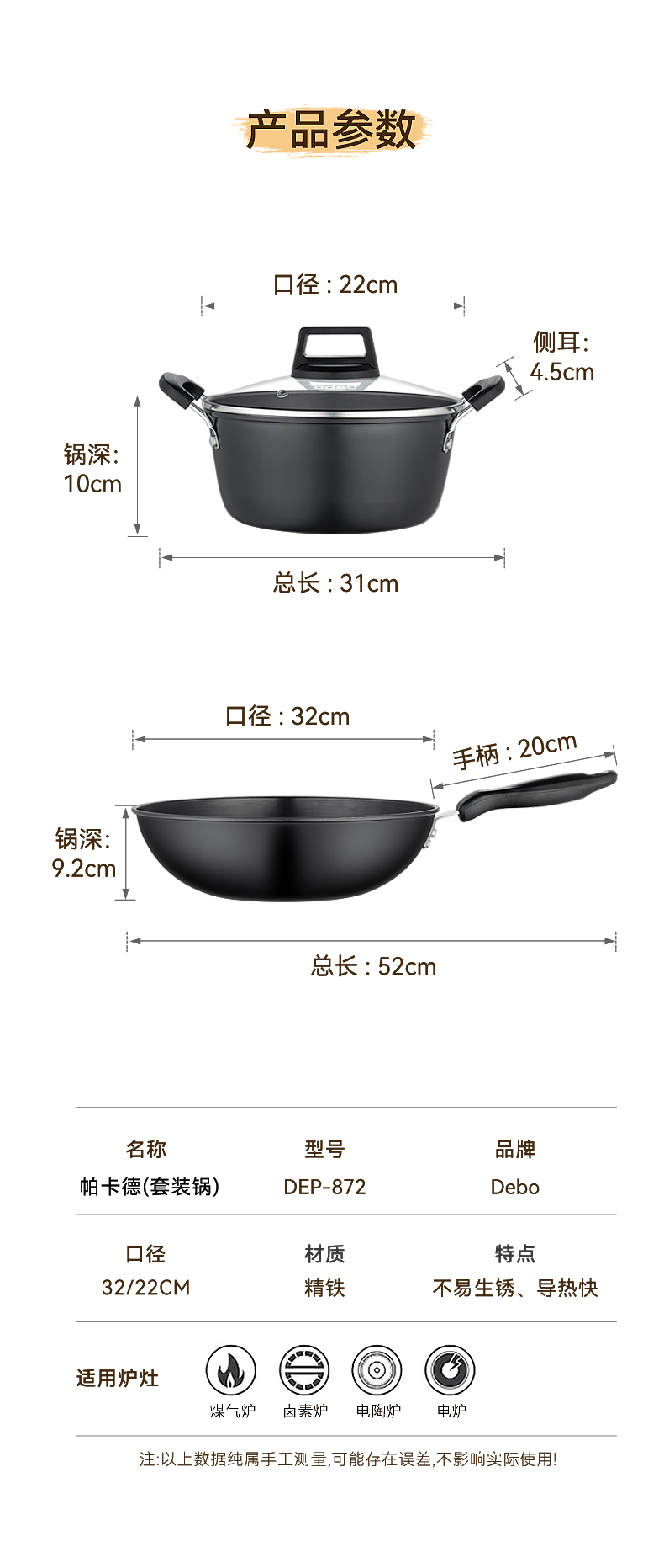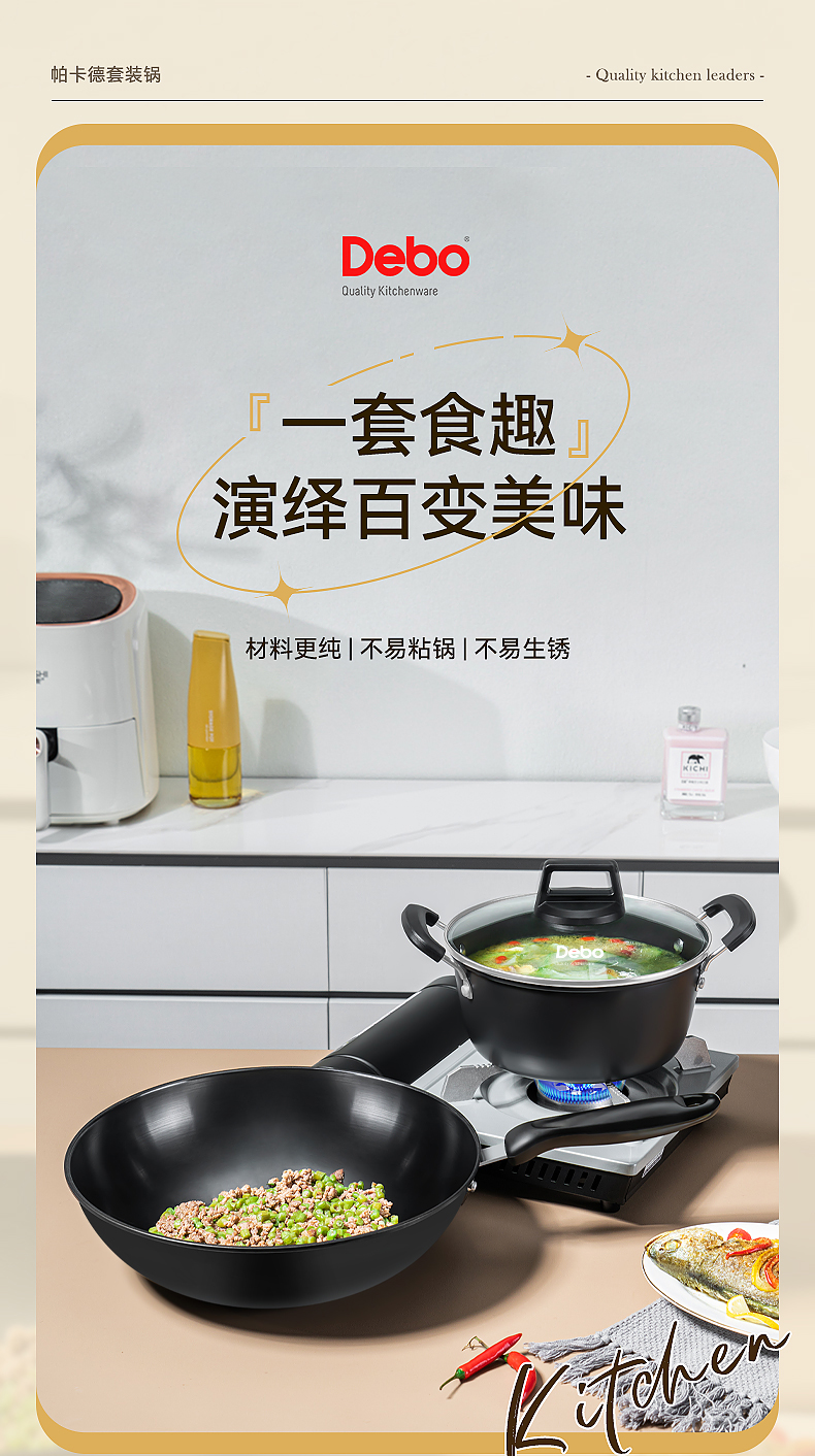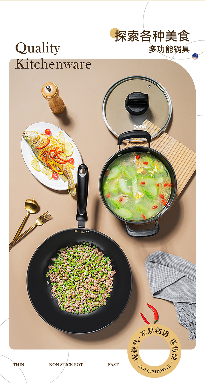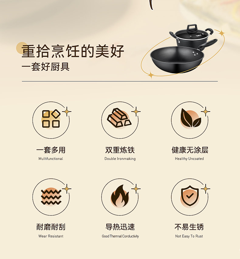 配置:炒锅身*1、汤锅身*1、汤锅盖*1