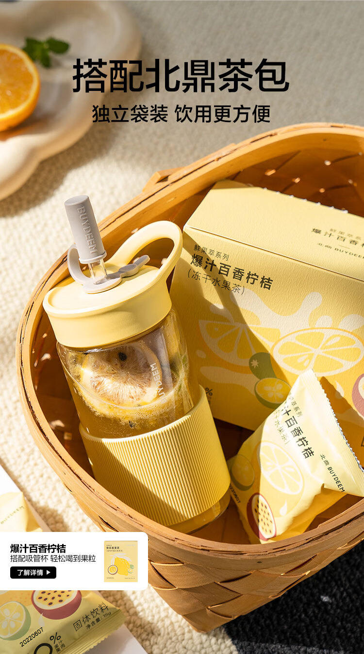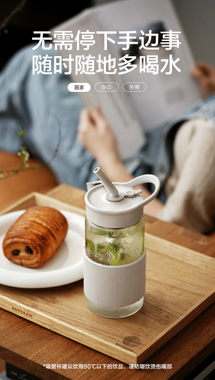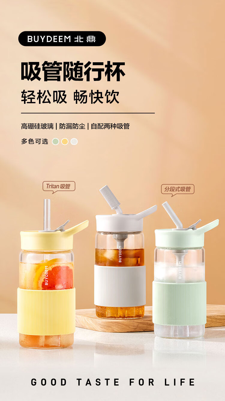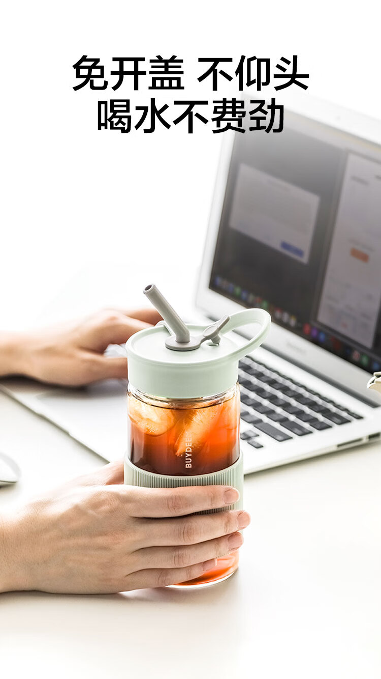 北鼎吸管杯冷饮杯大容量耐高温Tritan夏玻璃水杯带提手500ml高颜值吸管随行杯CD1017HF