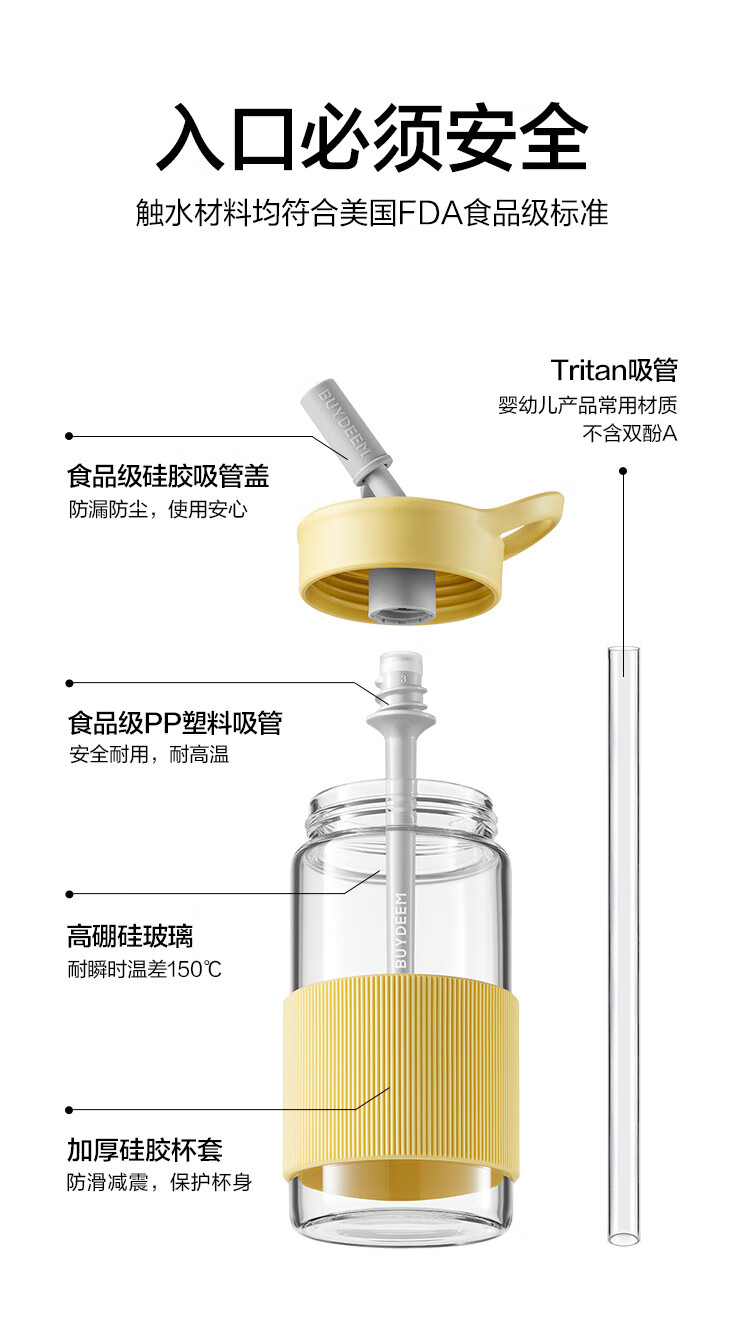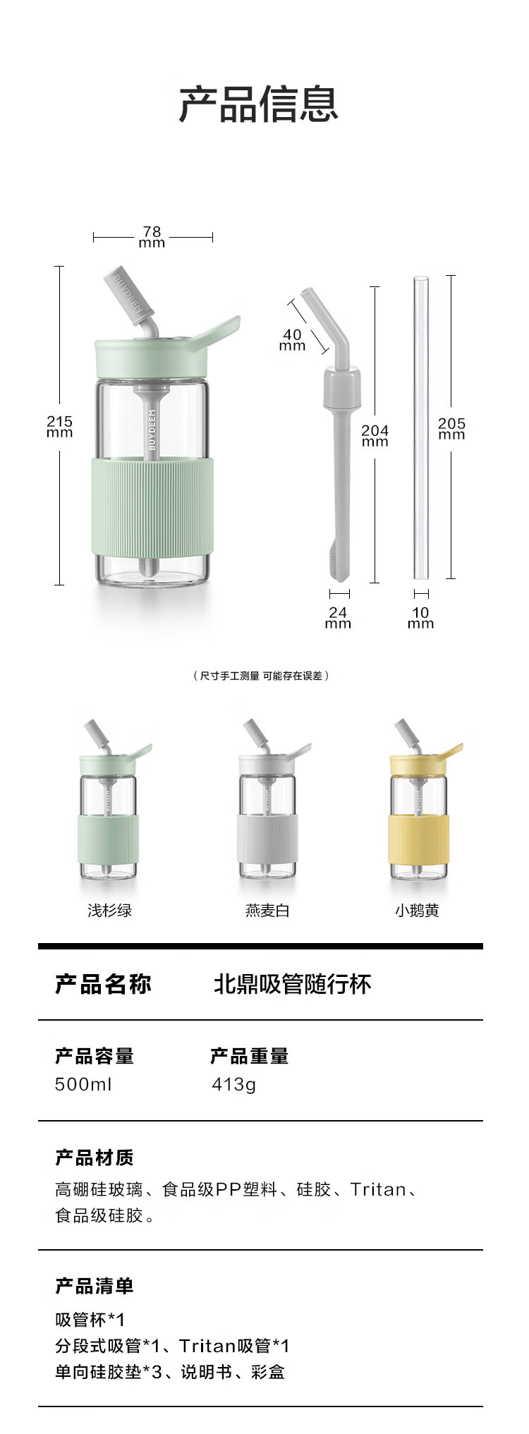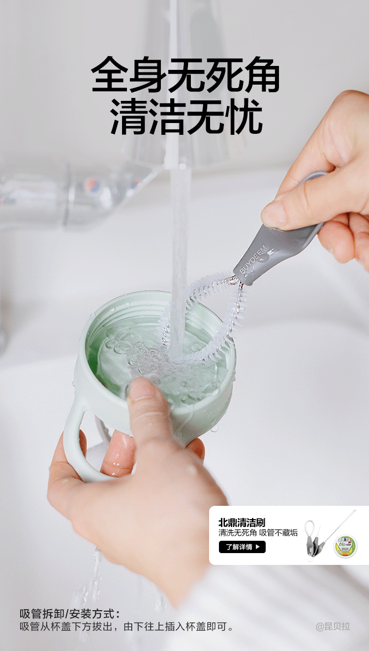 北鼎吸管杯冷饮杯大容量耐高温Tritan夏玻璃水杯带提手500ml高颜值吸管随行杯CD1017HF