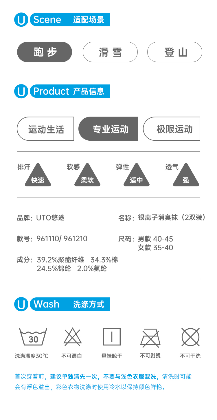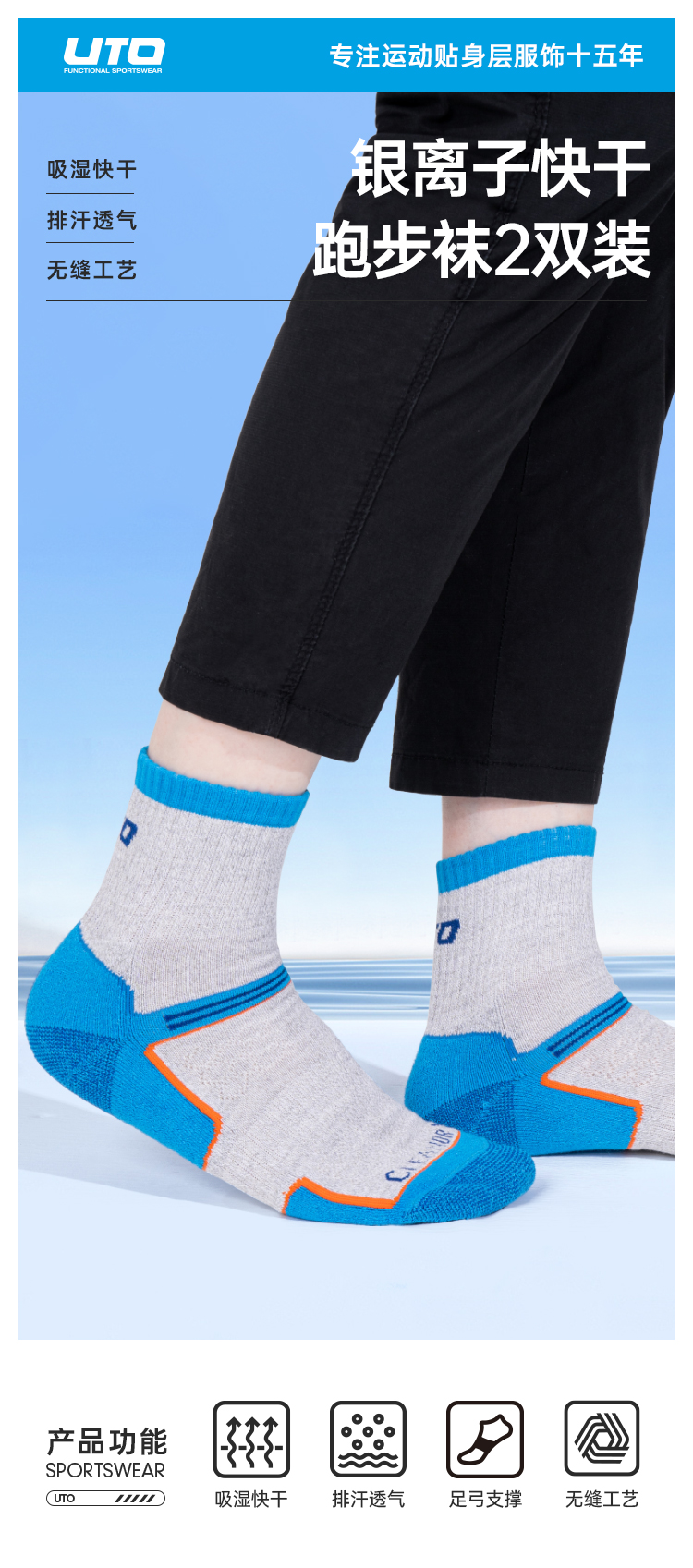 UTO/悠途UTO/悠途户外运动中筒袜女户外吸汗快干男士防臭袜2双装
