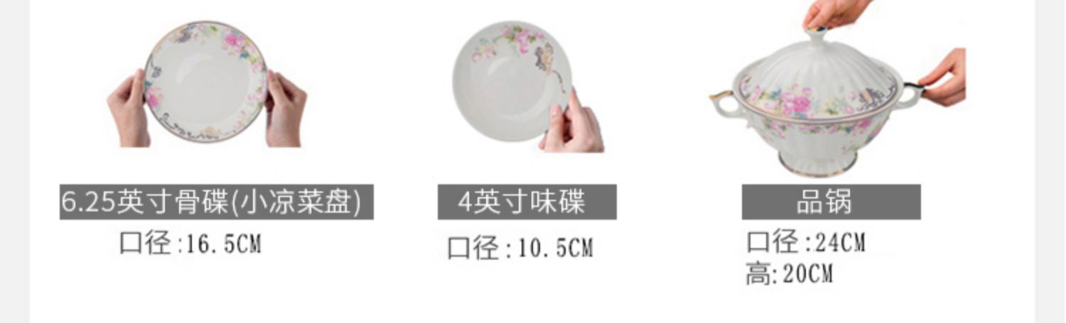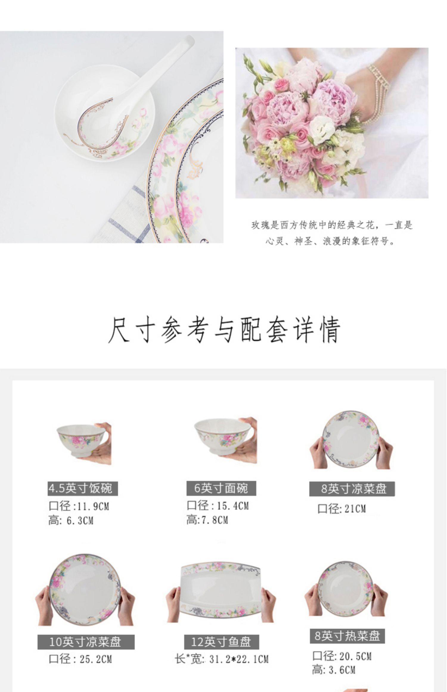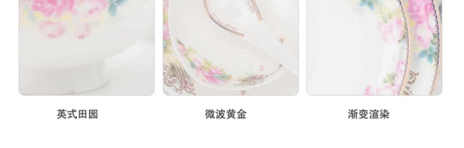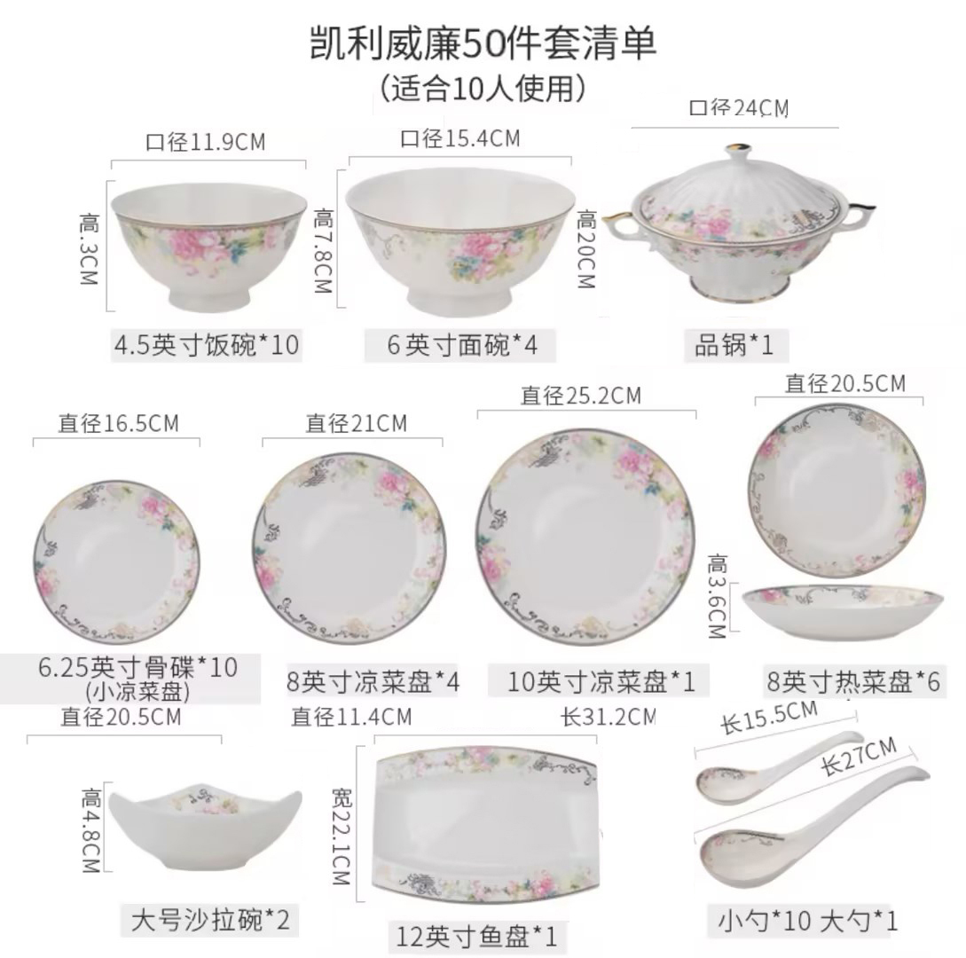 【清仓特惠3折,仅1套,无货退款】雷澳娜REONE 凯丽威廉10人用50头中式骨瓷碗碟餐具套装