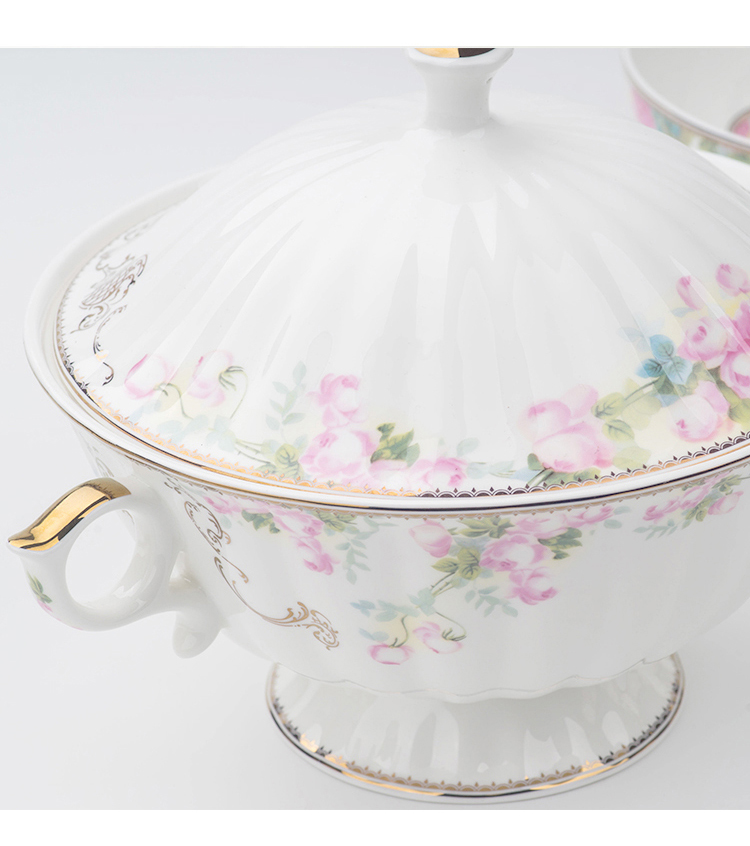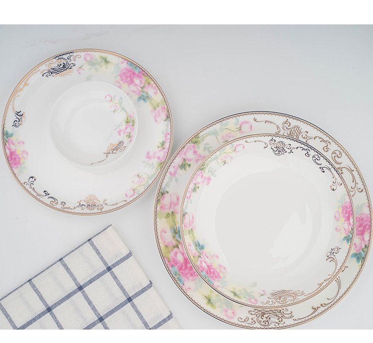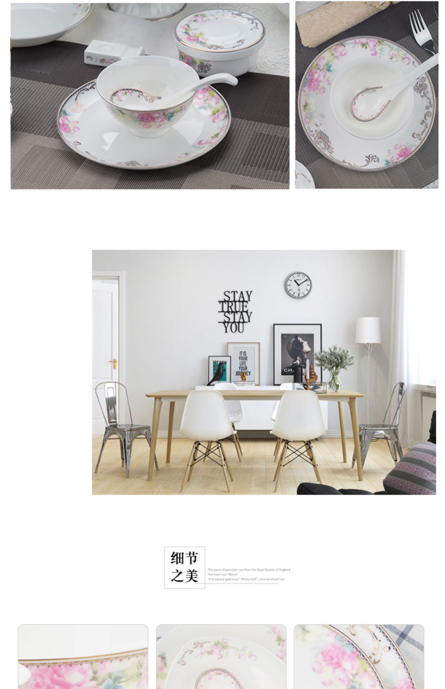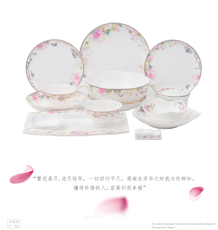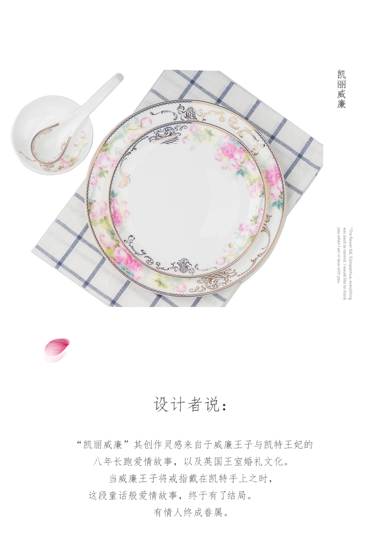 【清仓特惠3折,仅1套,无货退款】雷澳娜REONE 凯丽威廉10人用50头中式骨瓷碗碟餐具套装