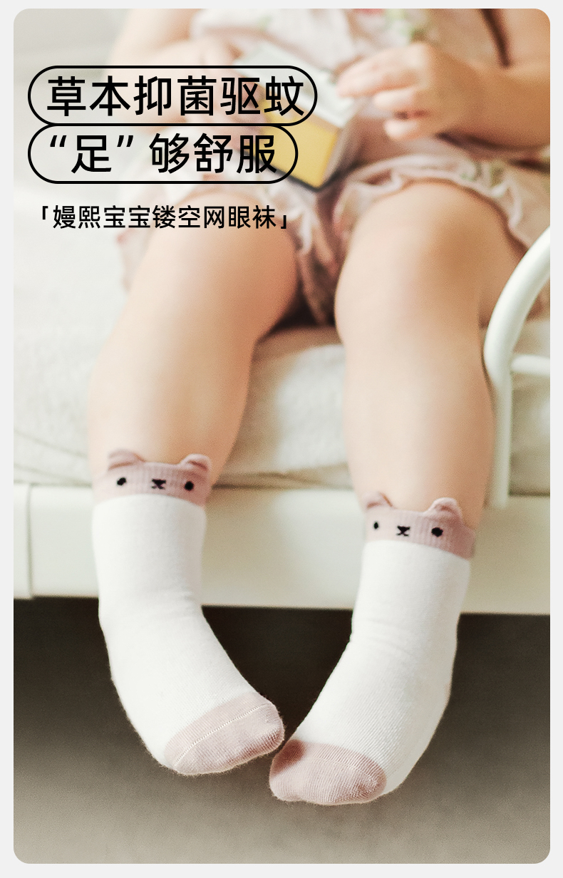 【母婴服配】嫚熙婴儿袜子春夏棉可宝宝中筒袜无骨松口新生儿袜