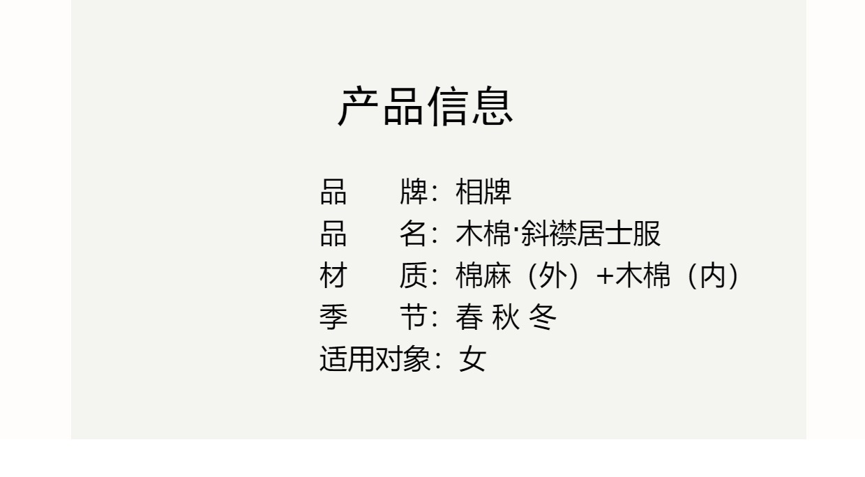 【相牌僧服旗舰店】木棉斜襟居士服女 棉麻面料 系带活扣秋冬保暖