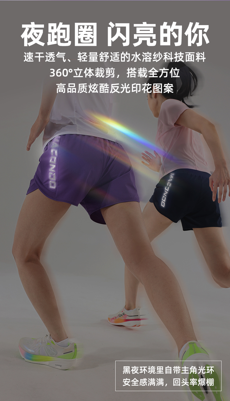 春夏马孔多男女夜跑水溶纱短裤4代 整圈腰包 炫酷点亮夜跑四面高弹 360°全透气 呼吸皮内衬 防汗手机仓+3大网兜 原创品类