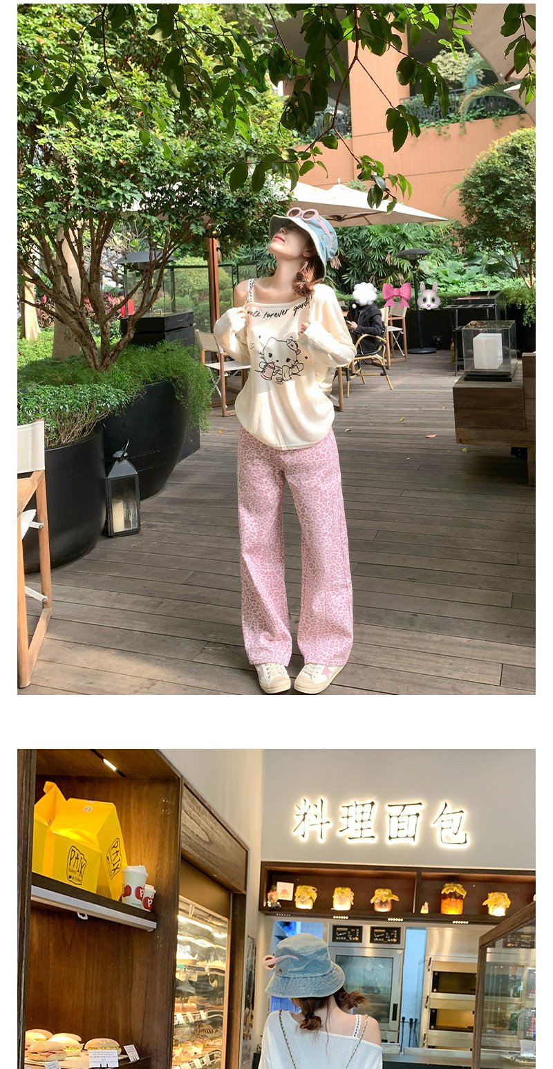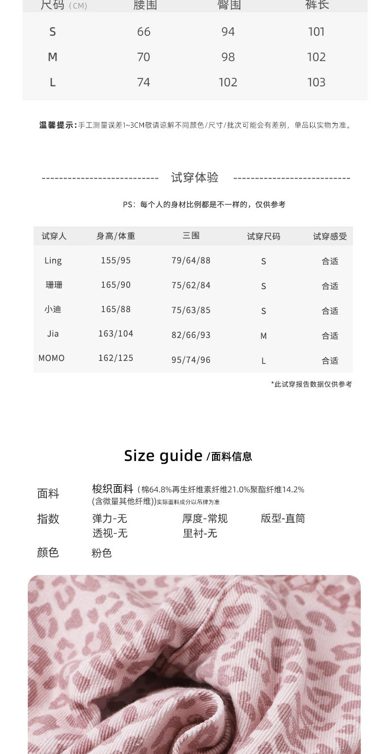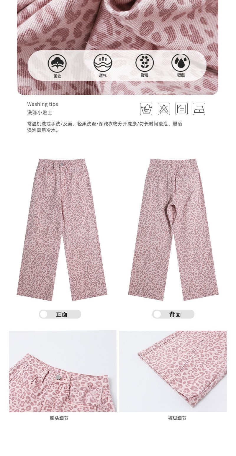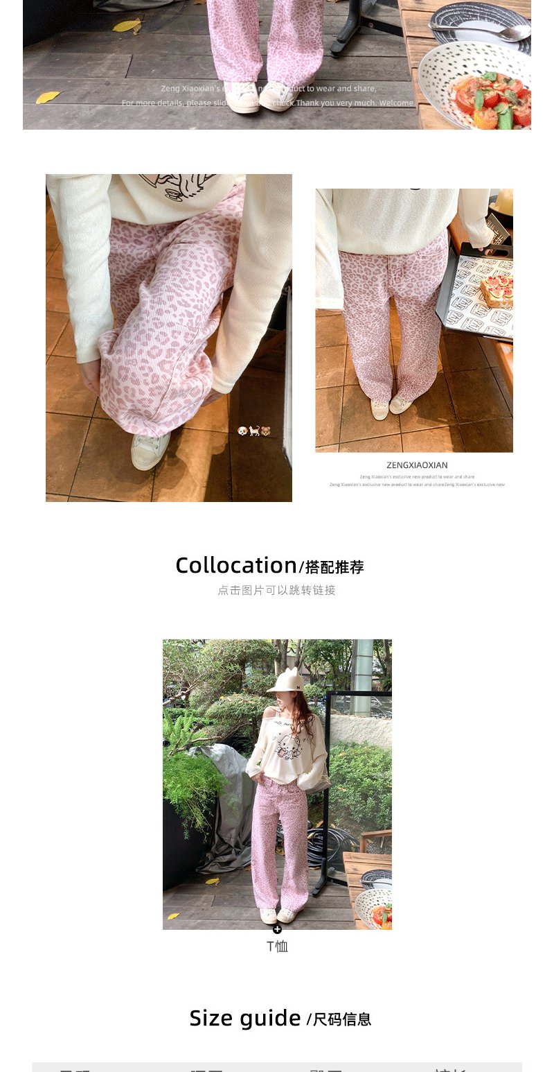 <曾小咸推荐>3.1现货秒杀!微信超特价!韩系粉色豹纹高腰直筒牛仔裤 日常229.99 立减130 秒杀99.99!