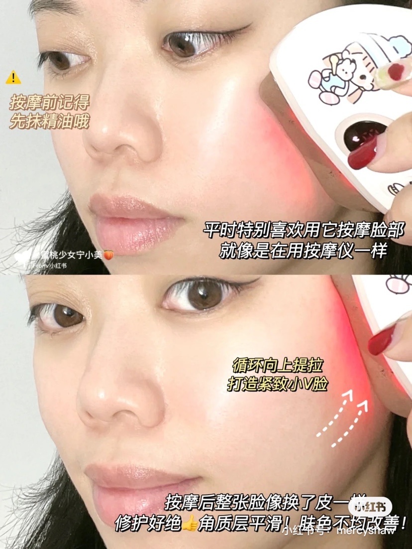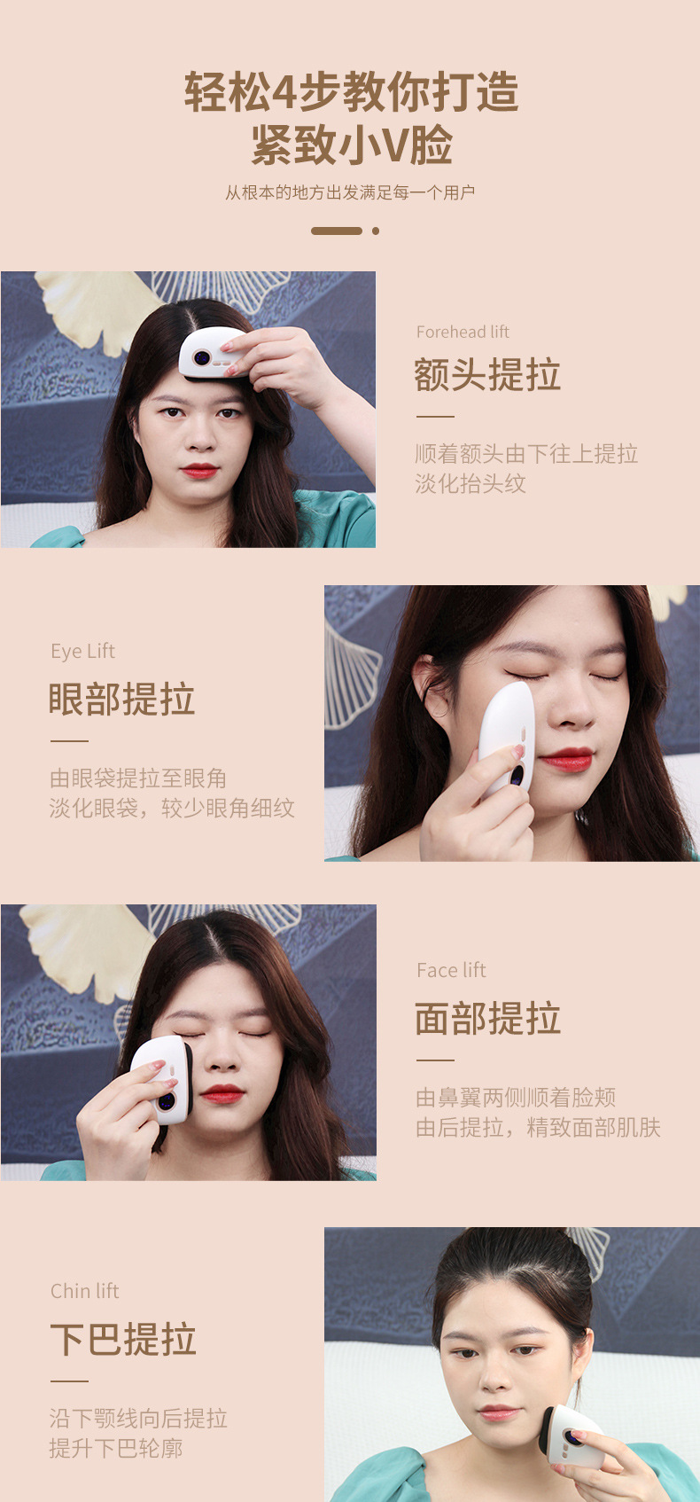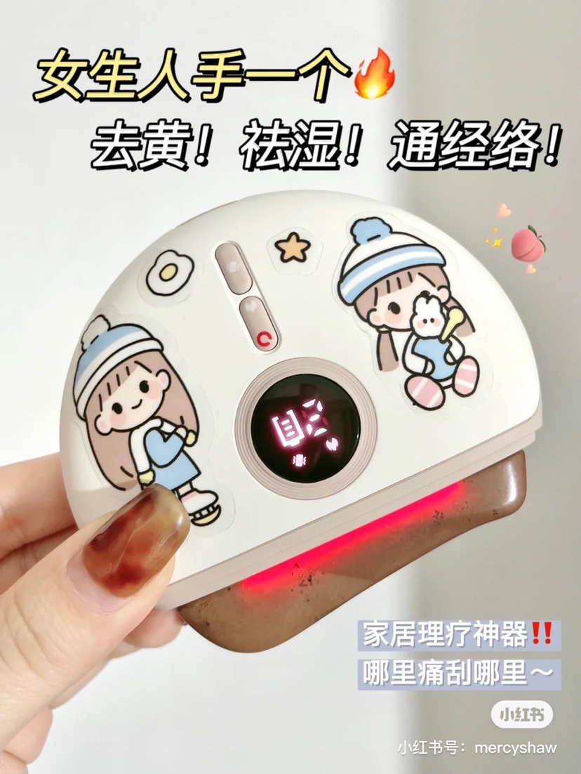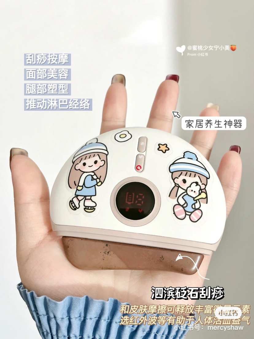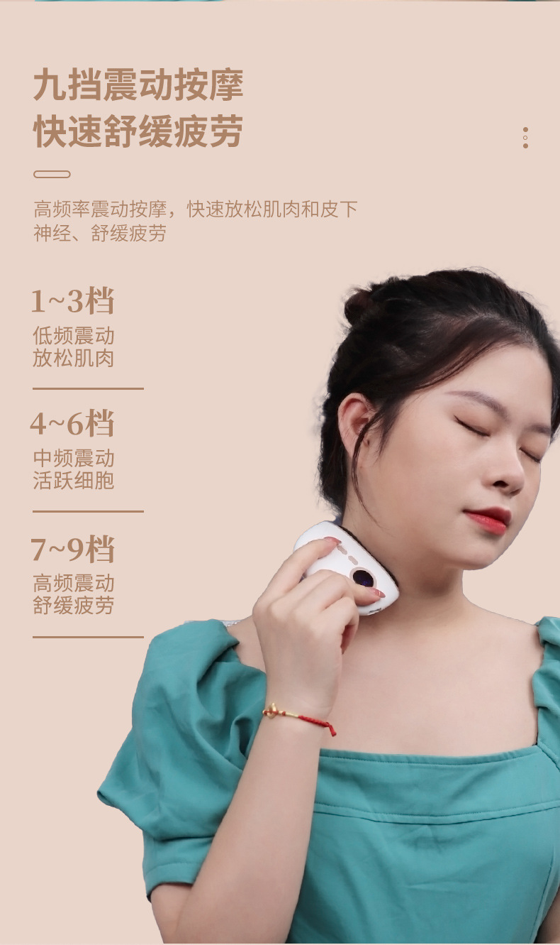 集“加热、振动按摩、推刮、红光”,四大功能为一体。