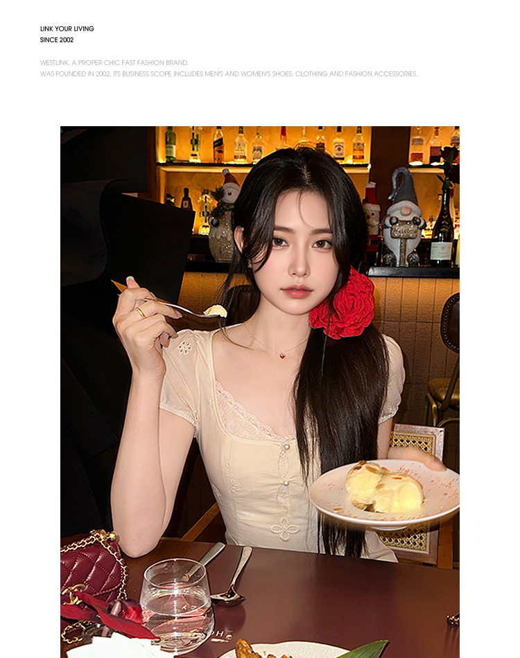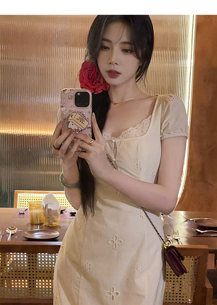 西遇法式连衣裙女新款温柔风刺绣镂空领口蕾丝边长裙SS150104