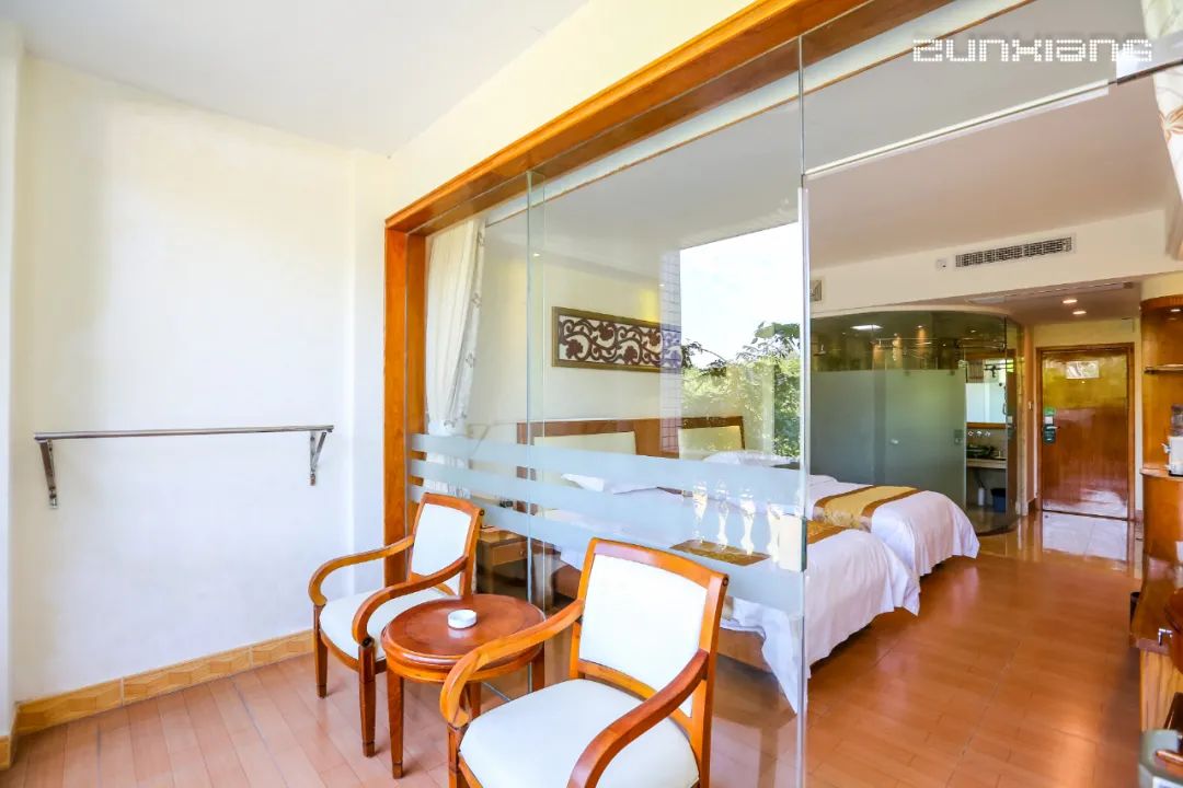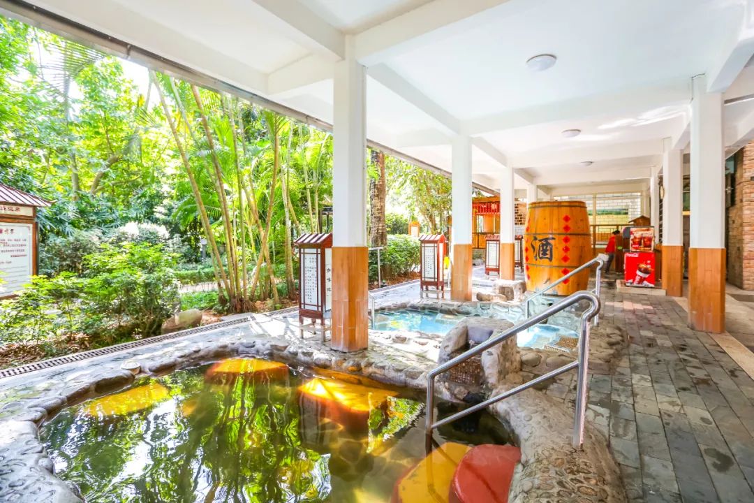 这里的温泉水都是纯天然的,住在这里富氧离子特别多的地方,感觉挺好的。 天然的温泉水加上人工调配的特色药材,能够让客人有更多的选择,同时还设有特色情趣鱼疗区,通过小鱼啄食肌肤,按摩、杀菌还好玩,赞。