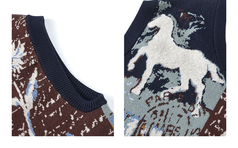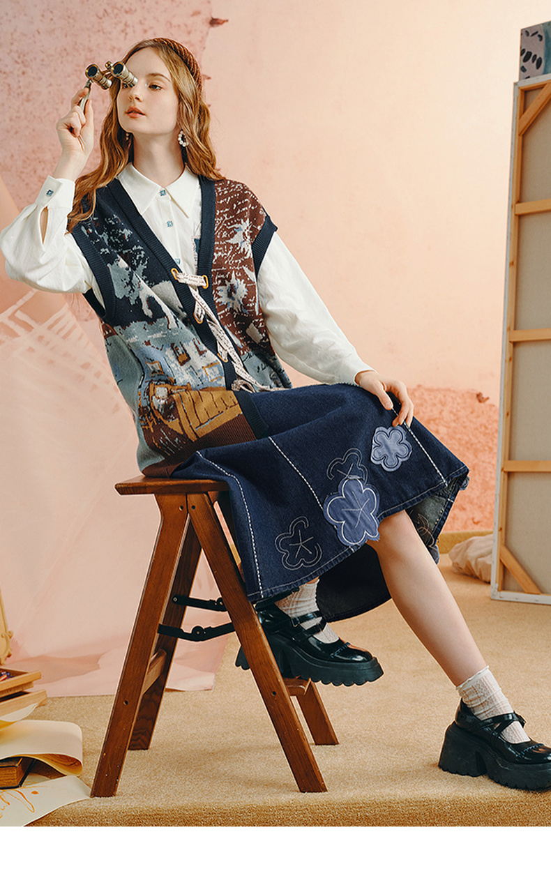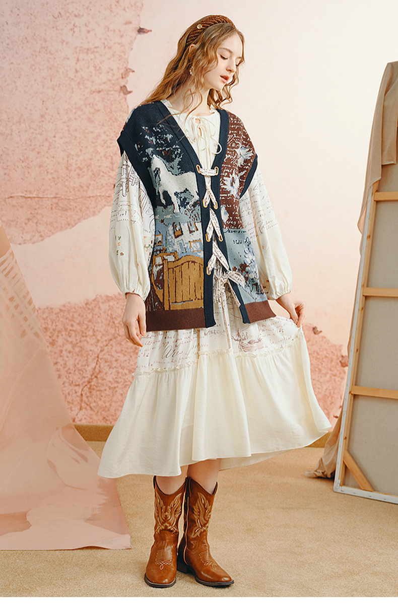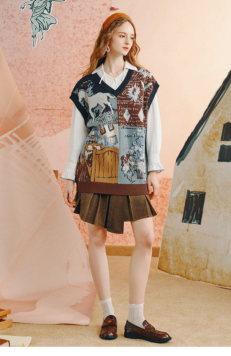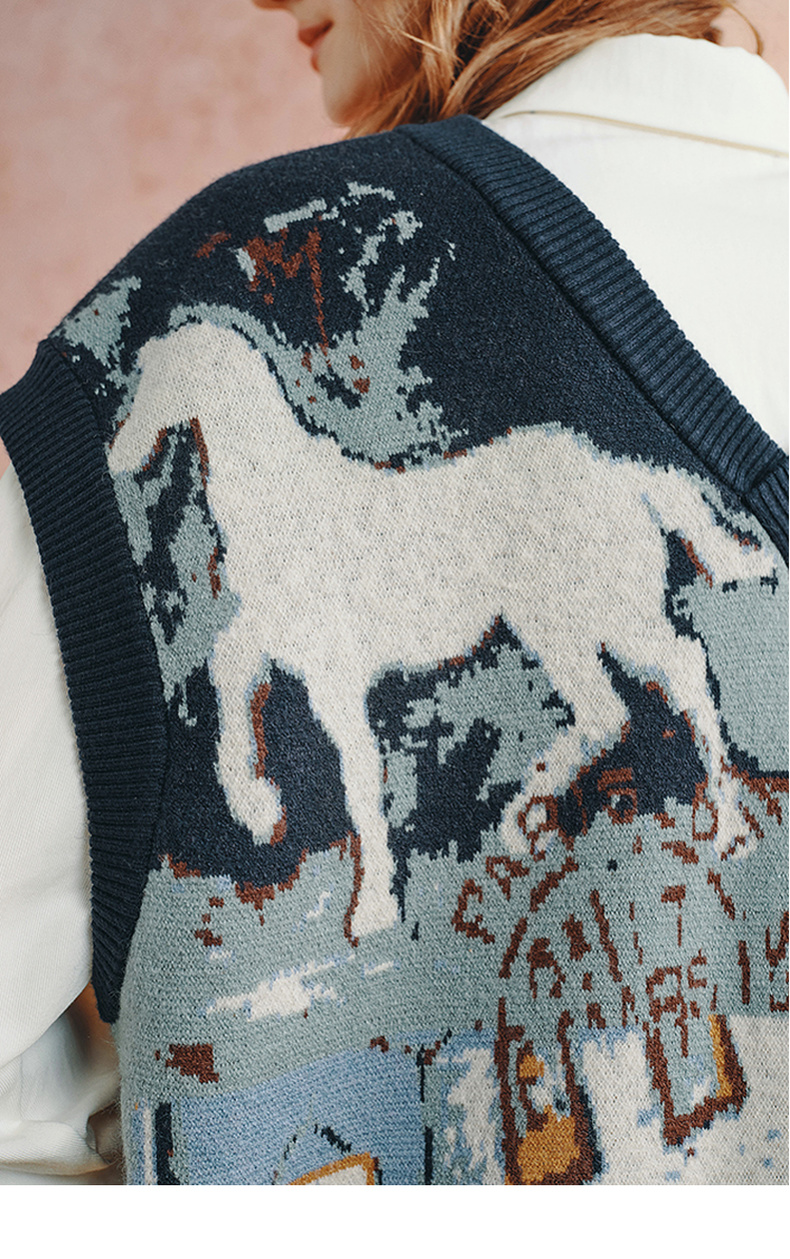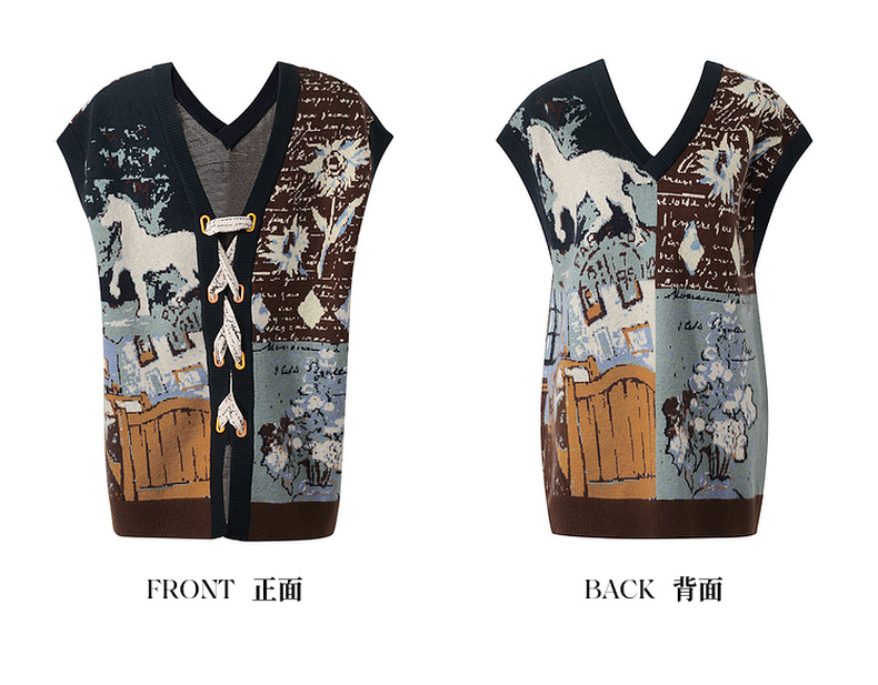 两三事梵高文艺 未驯之灵 2025秋季新款花色两面穿绑带套头毛衣女