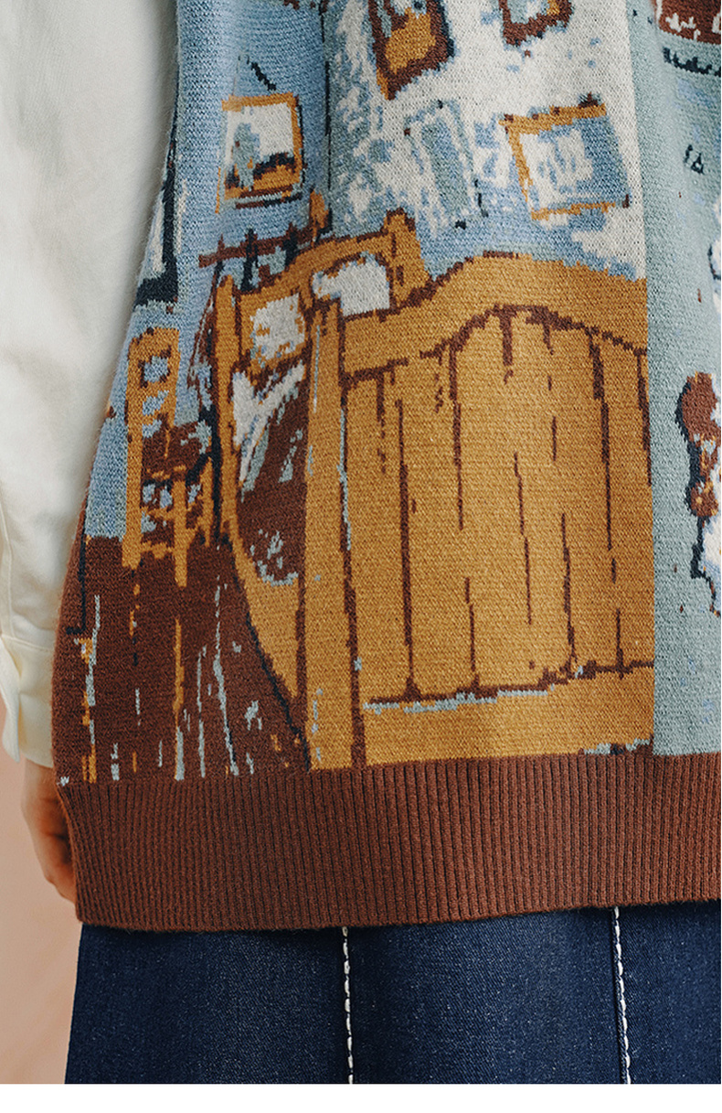 两三事梵高艺术灿烂与偏执秋复古开衫毛衣外套女慵懒风设计感小众