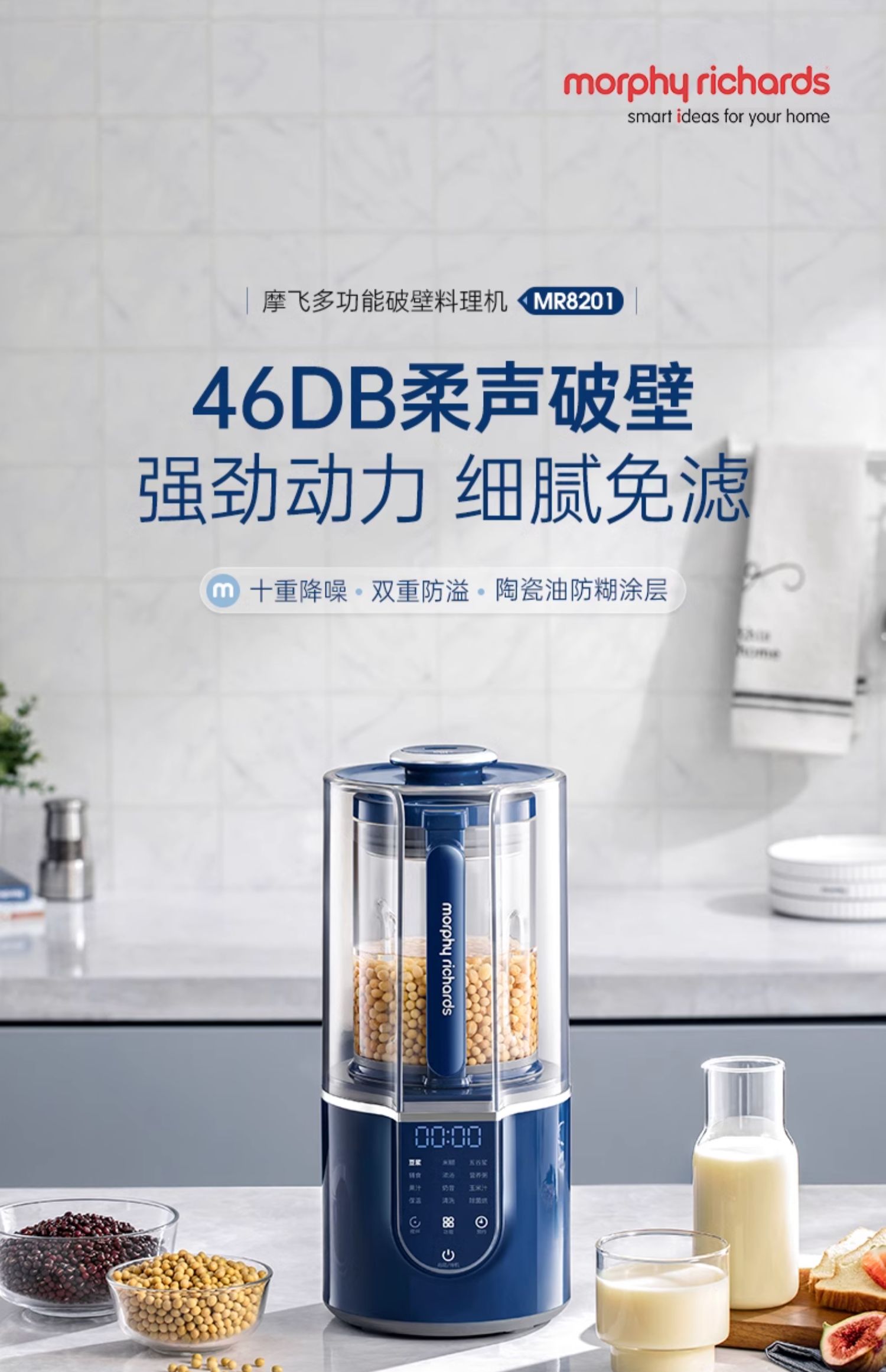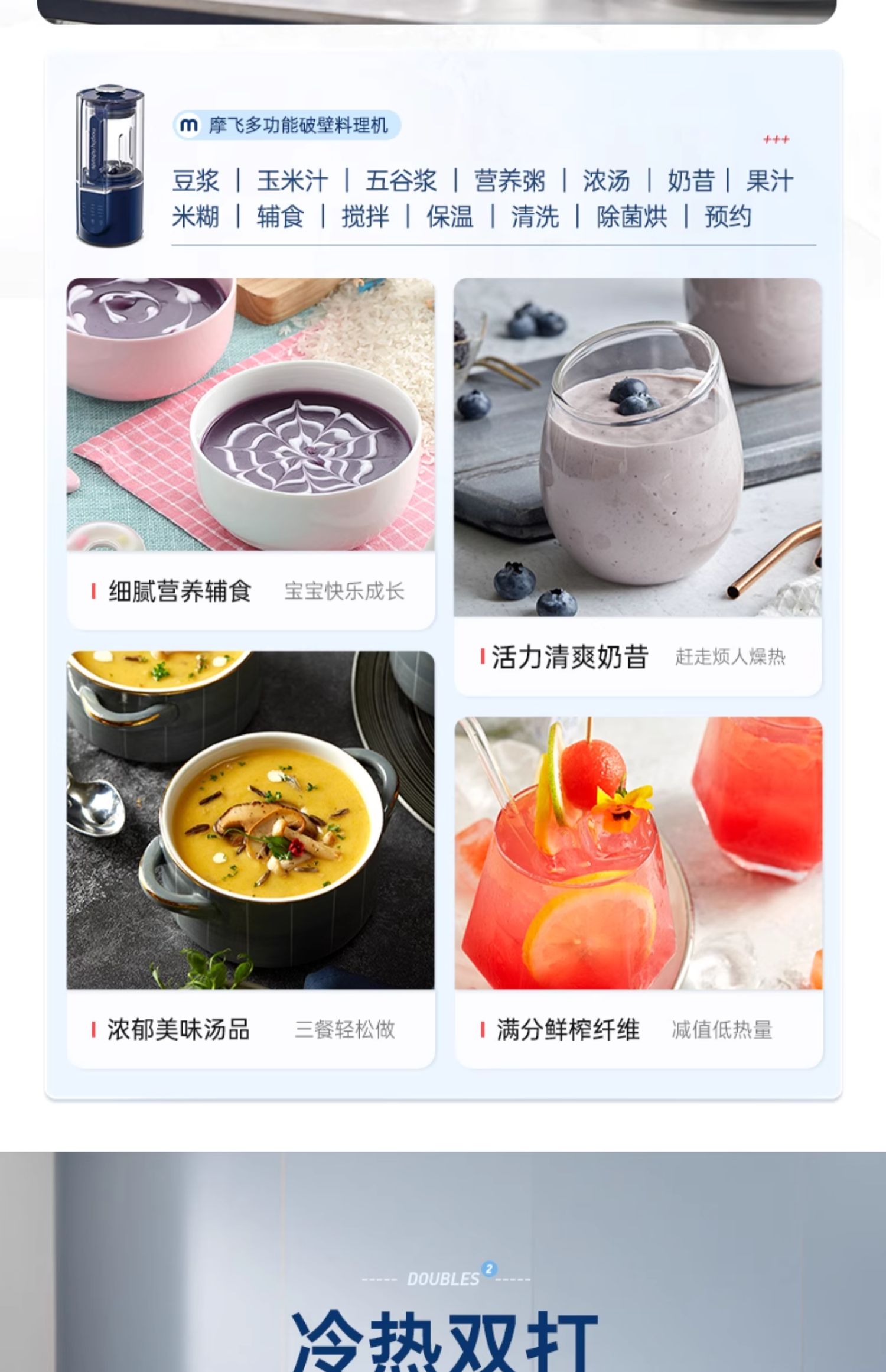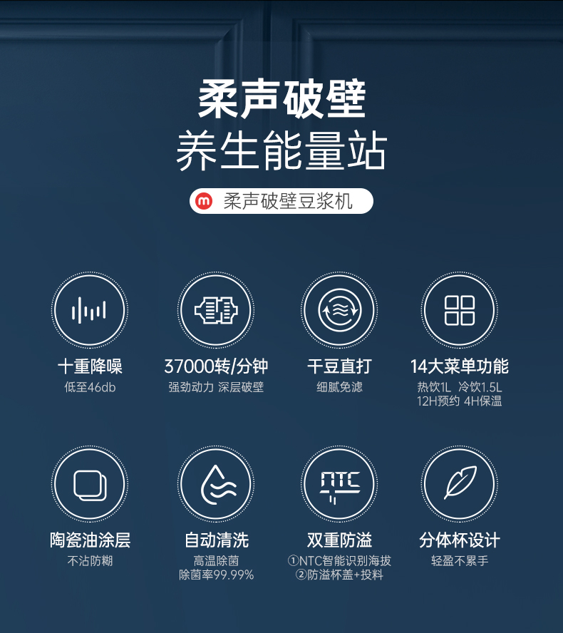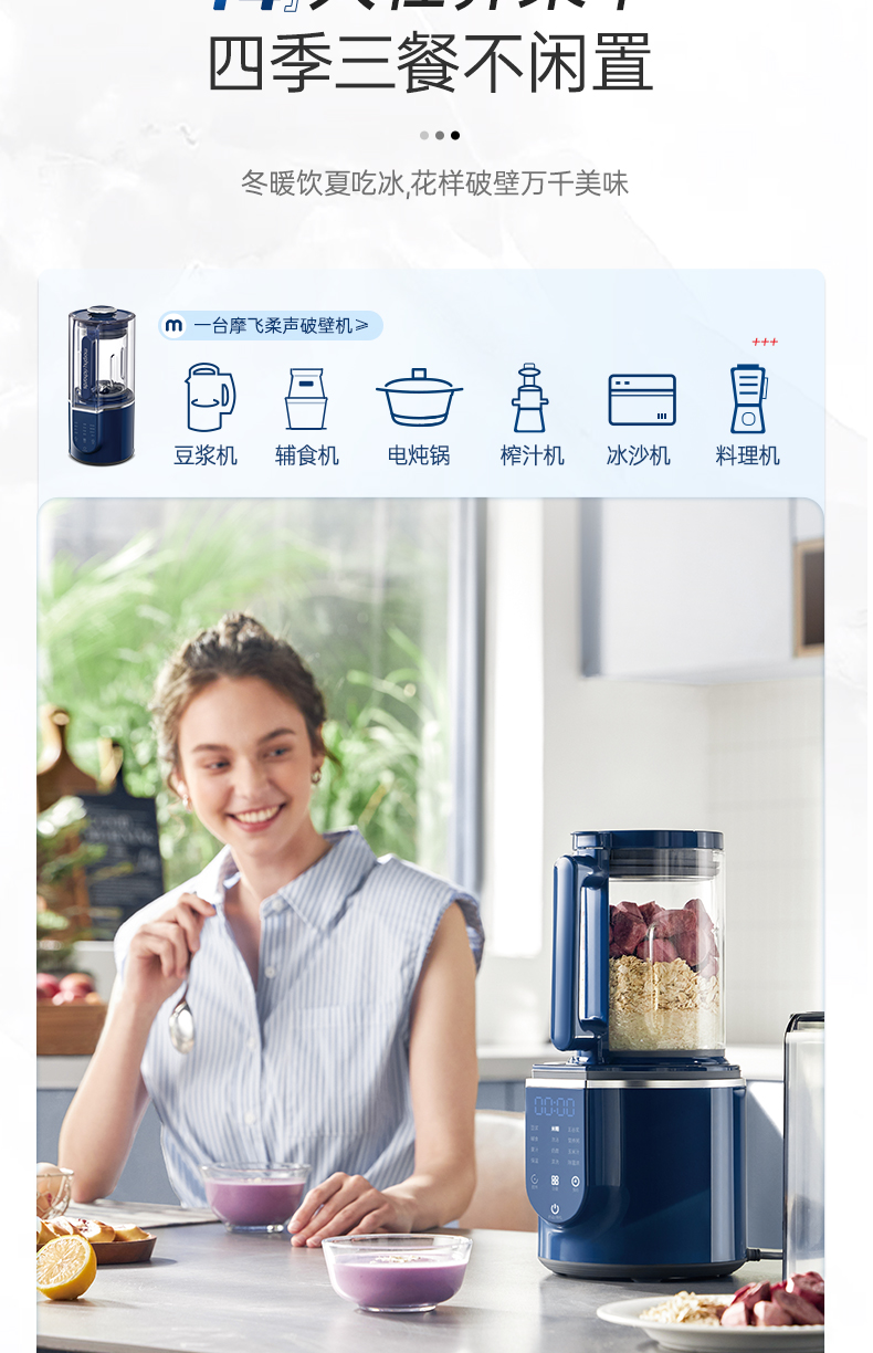 【摩飞柔声破壁机】家用婴儿米糊机全自动豆浆机多功能料理机榨汁机