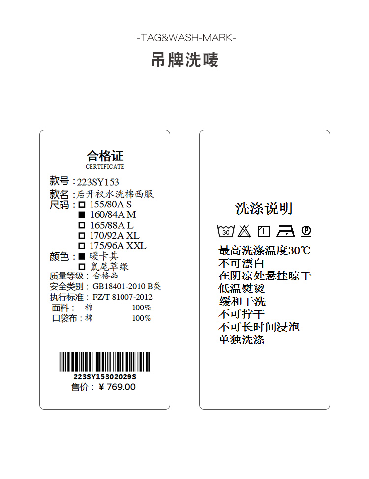 后开衩水洗棉西服223SY153