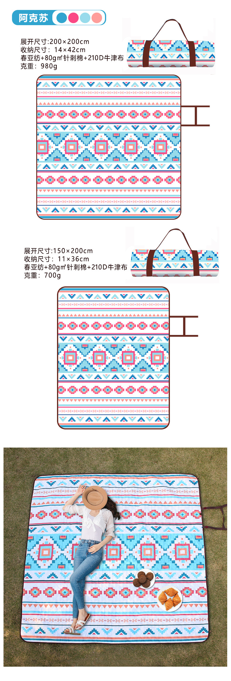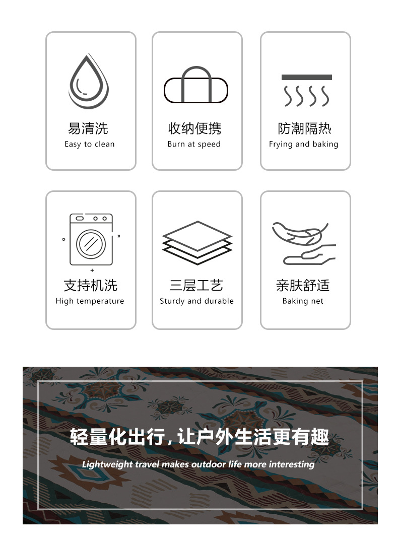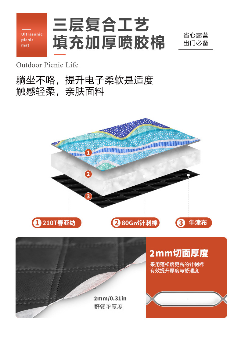 户外野餐垫超声波露营防潮垫便携式可折叠机洗野餐布加厚沙滩垫