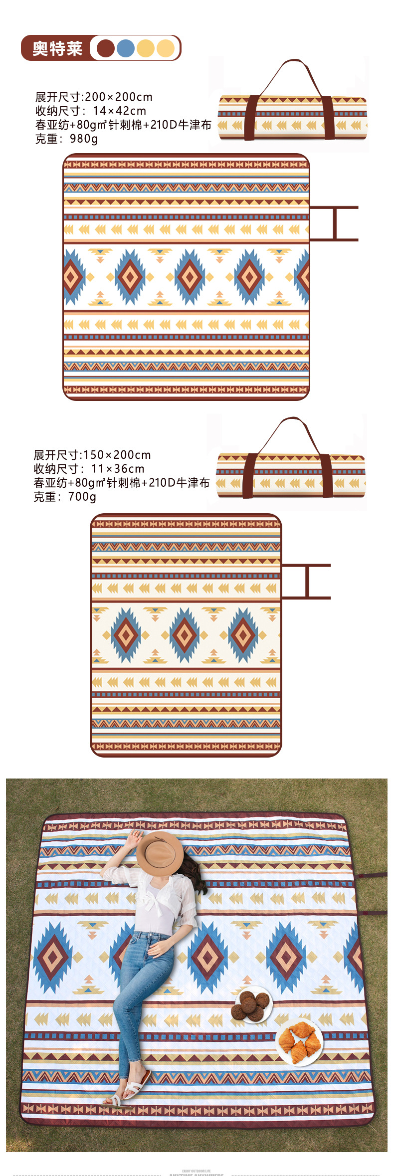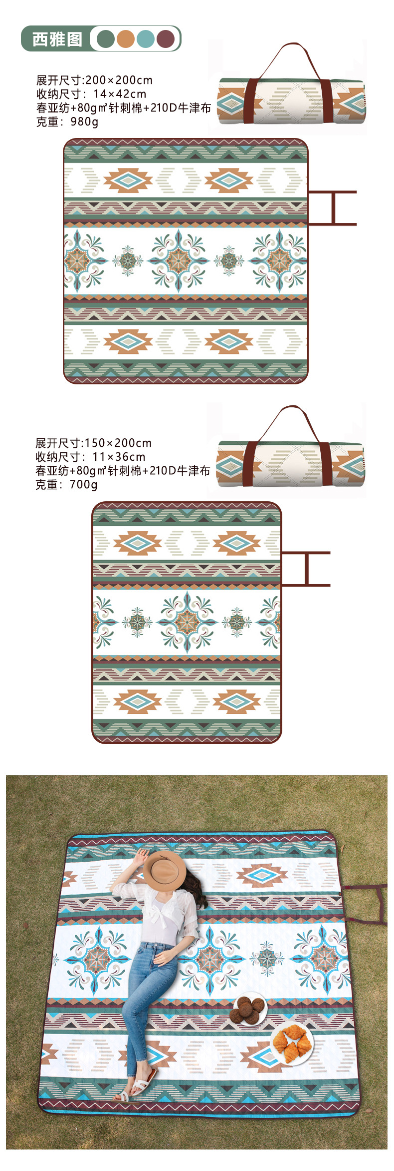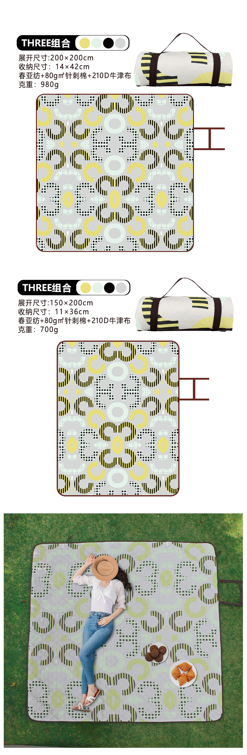 户外野餐垫超声波露营防潮垫便携式可折叠机洗野餐布加厚沙滩垫