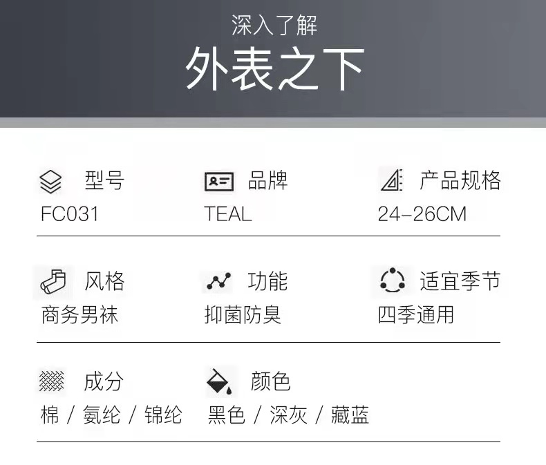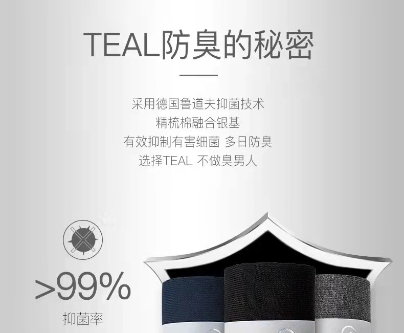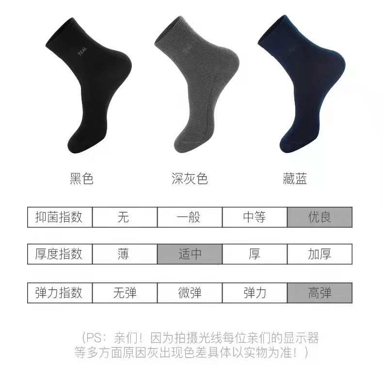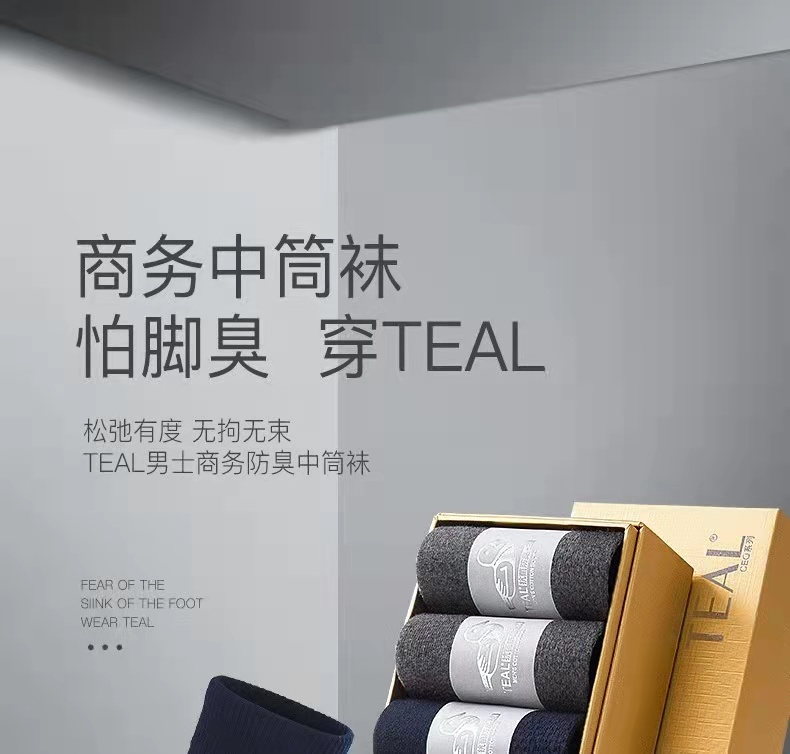 TEAL2021款秋冬抗菌防臭纯色棉袜