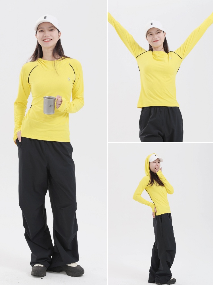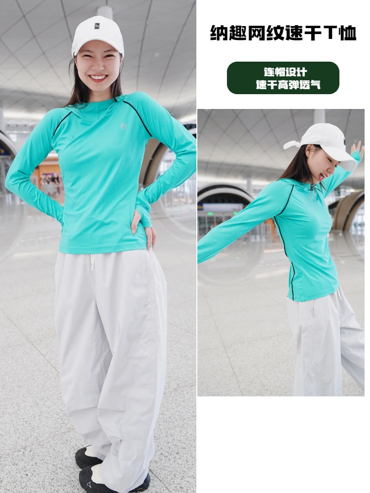 纳趣户外连帽速干衣弹力吸湿排汗透气运动长袖T恤女跑步登山徒步