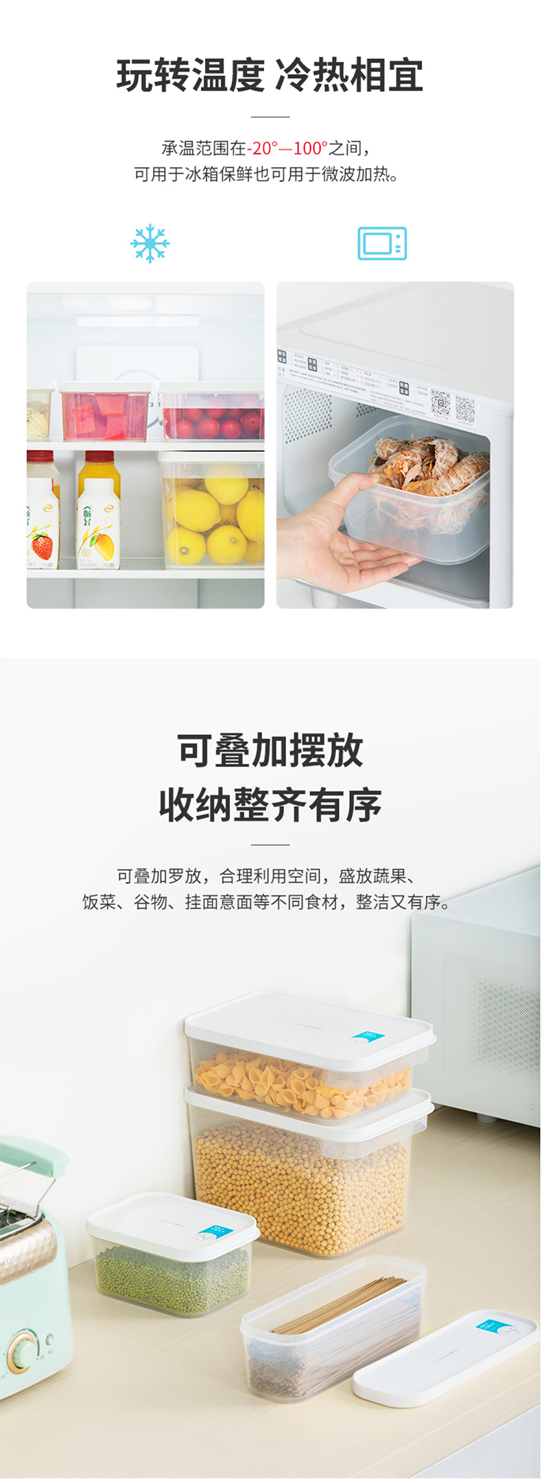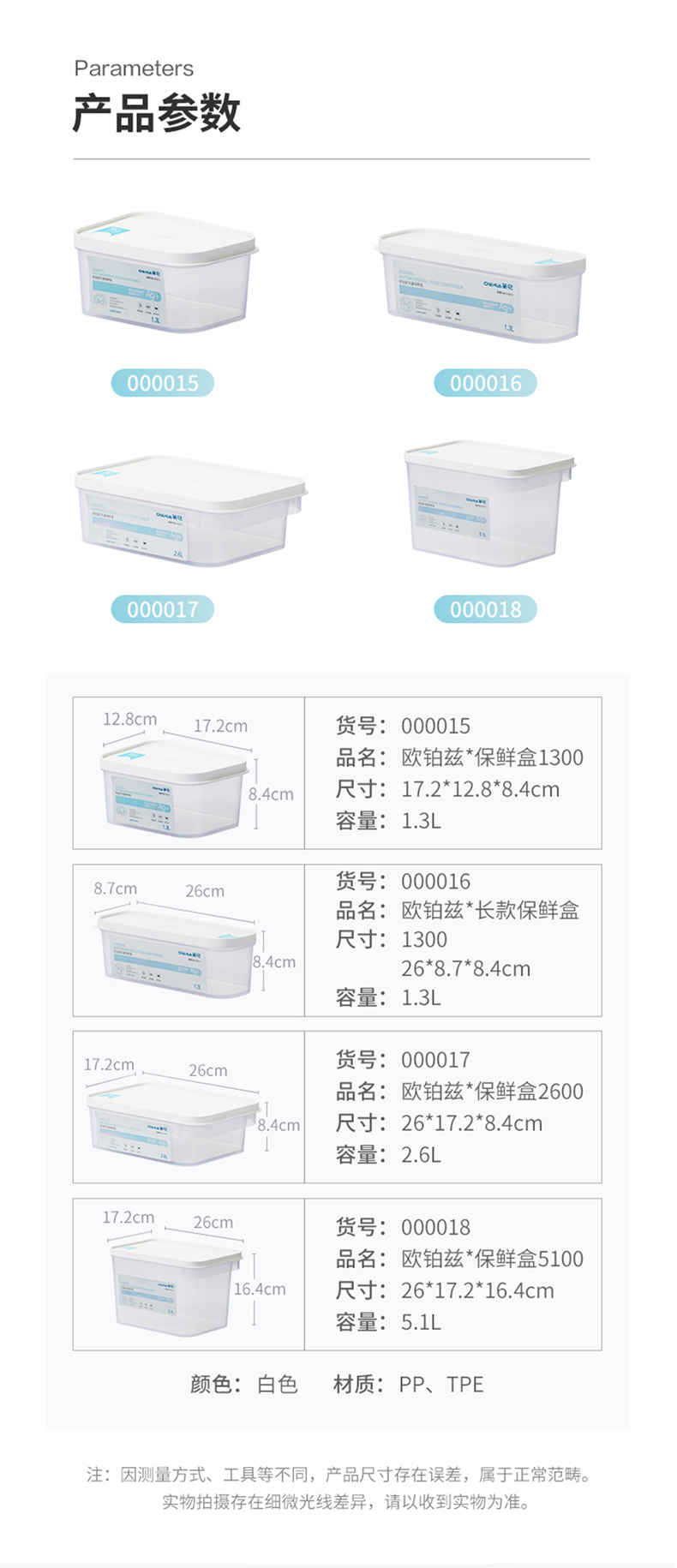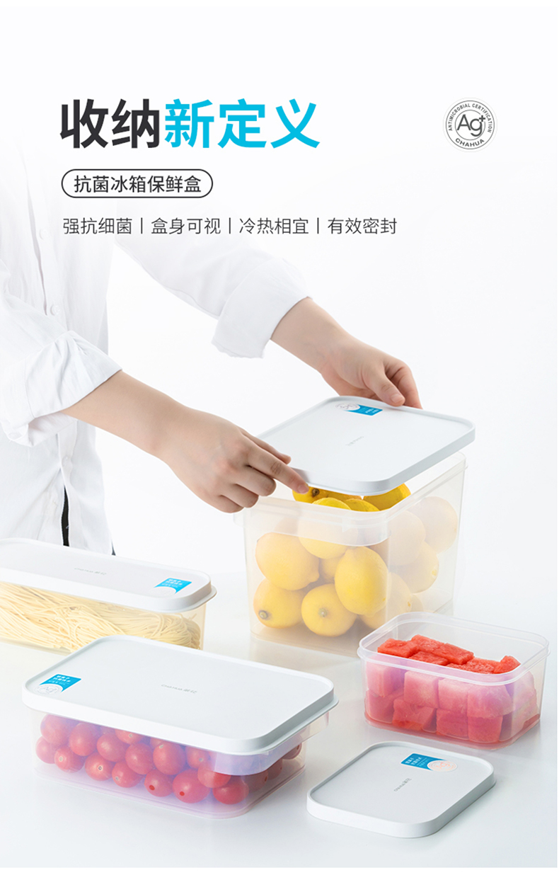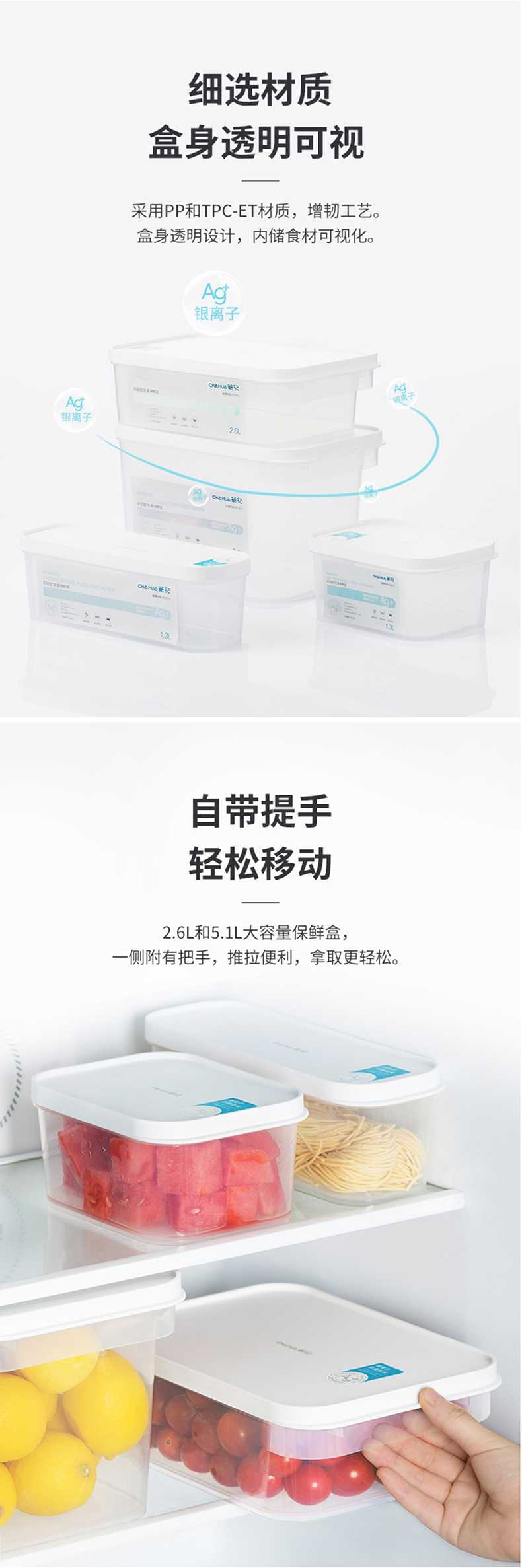 茶花欧铂兹保鲜盒2.6L+5.1L冰箱收纳保鲜盒塑料微波炉饭盒密封盒便携水果盒储物盒子