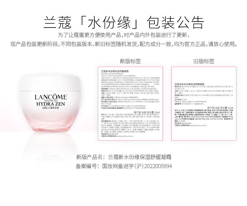 兰蔻全新水份缘舒缓凝霜50ml