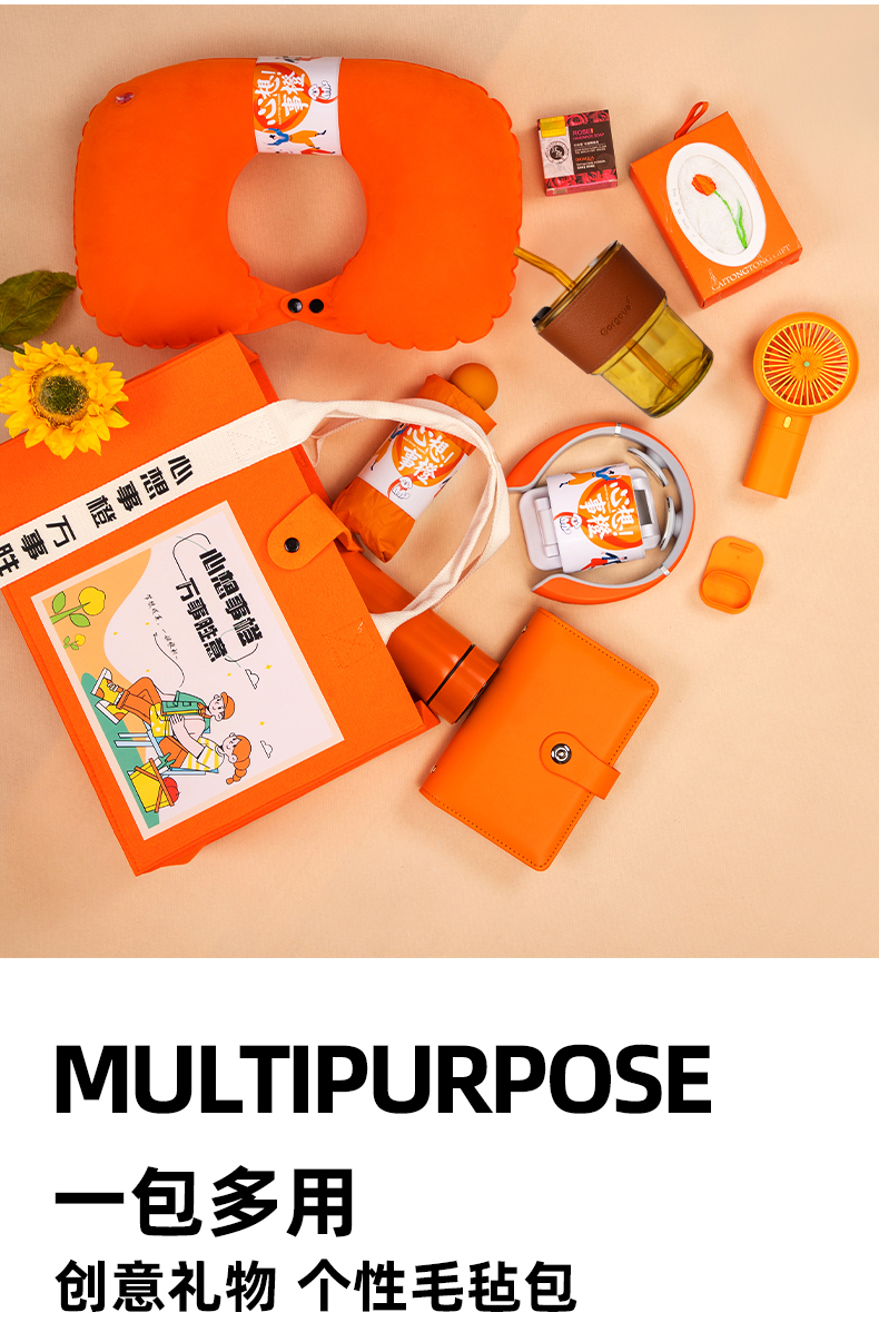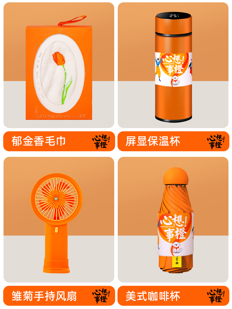 环球礼盒生日礼物高端实用【心想事橙套装】充气枕/伞/风扇/颈椎仪/郁金香毛巾/350ML温控杯六件套