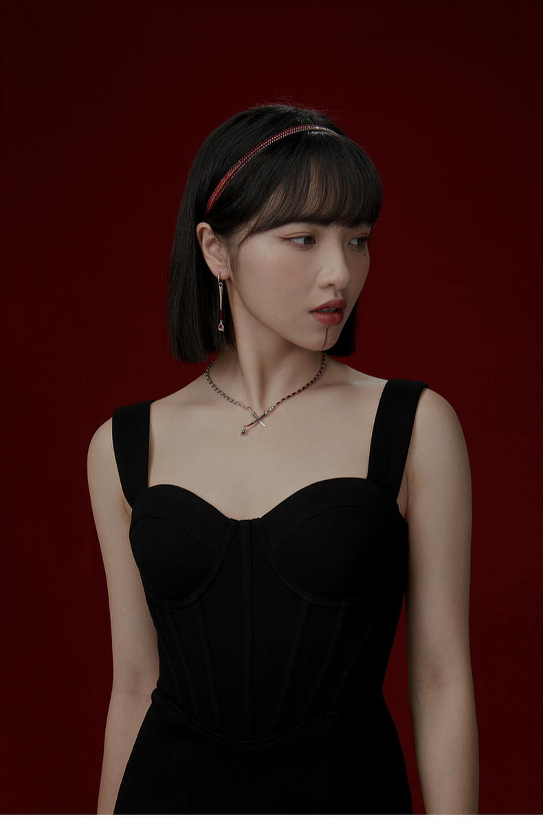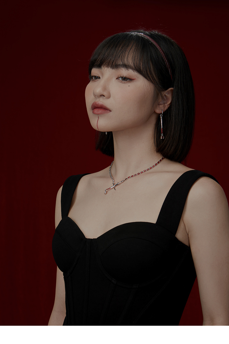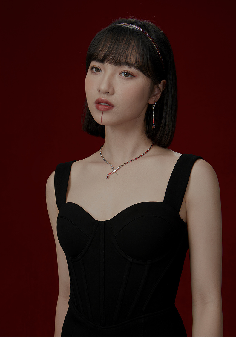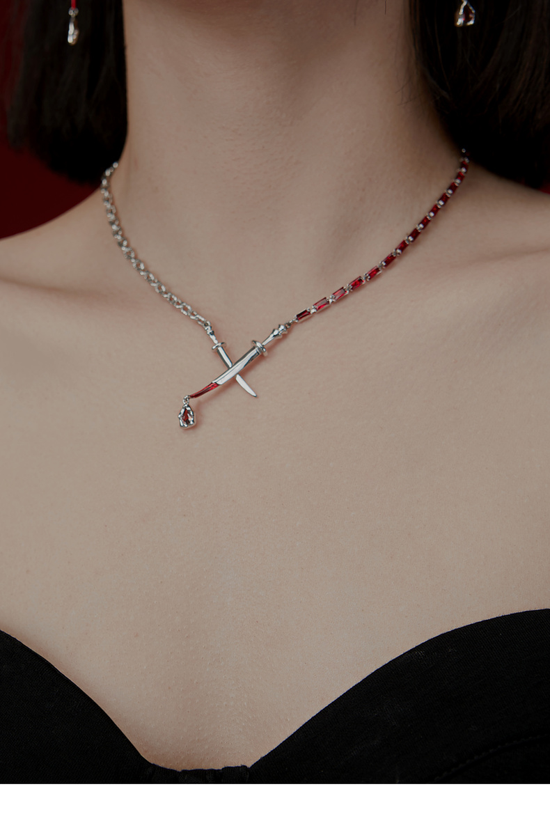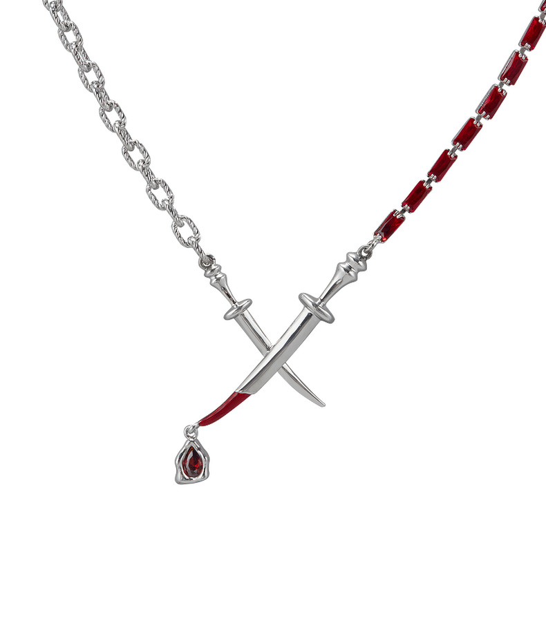 野月亮拼接链条项链女原创暗黑个性夸张匕首锁骨链小众简约吊坠221YX0025