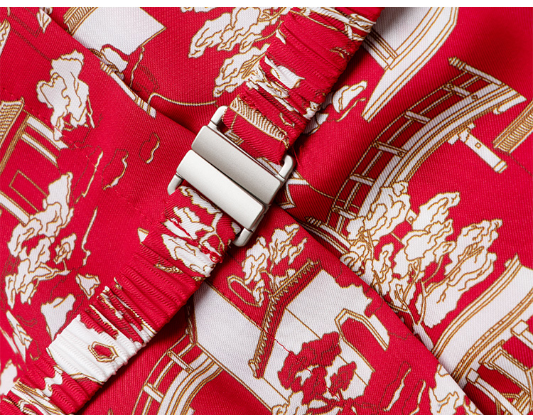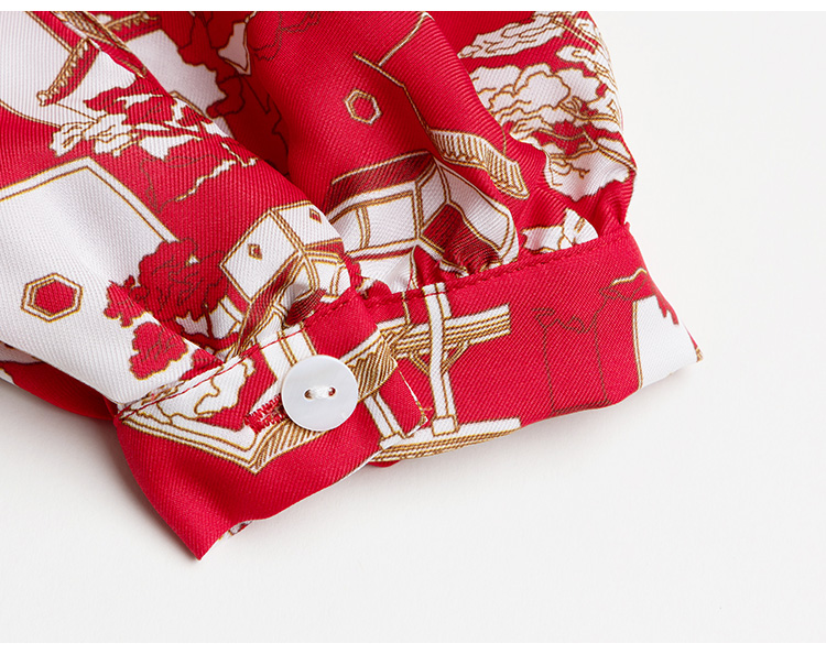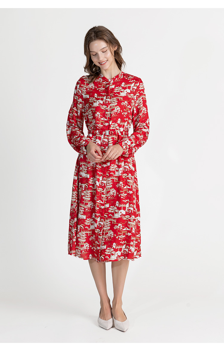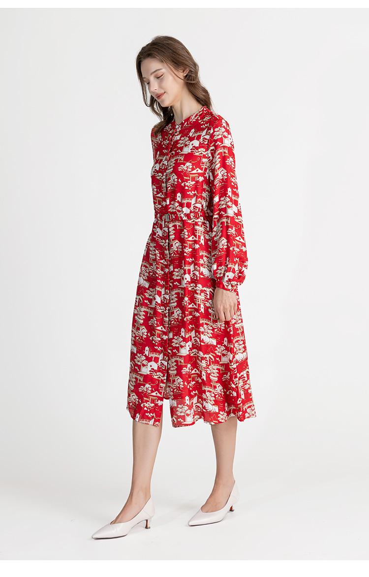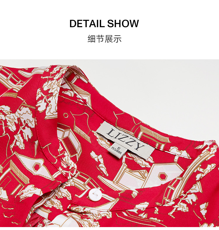 LIZZY夏季通勤休闲舒适桑蚕丝印花长袖连衣裙配腰带8130