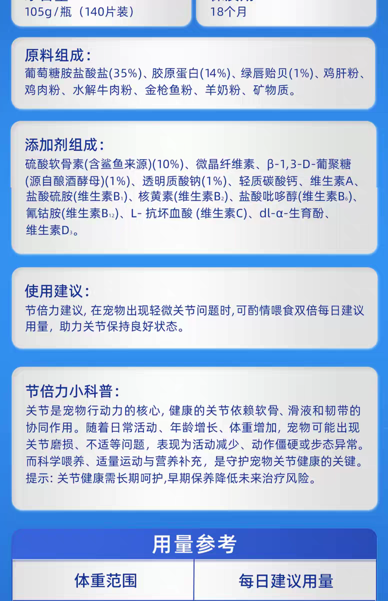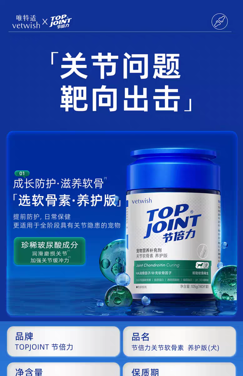 唯特适 vetwish 犬猫用鲨鱼软骨素 全新升级 节倍力