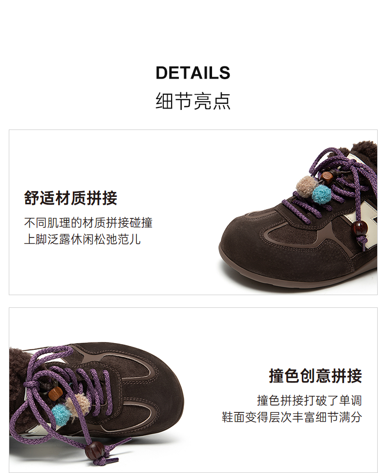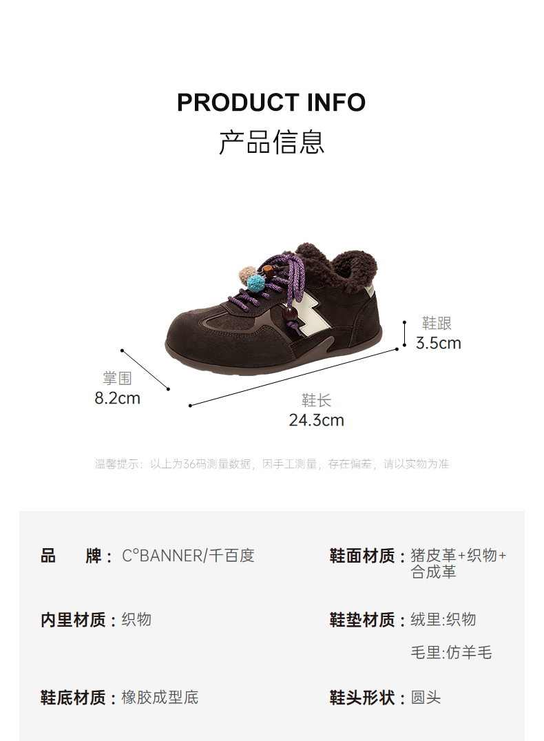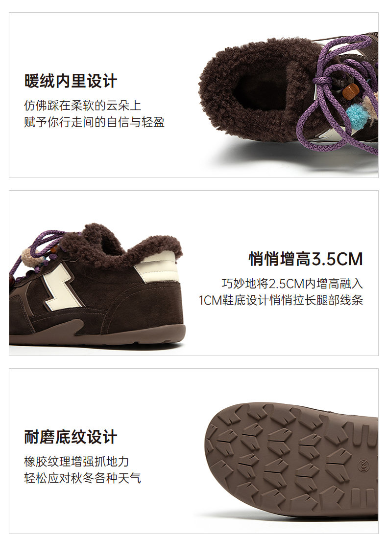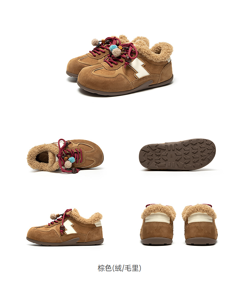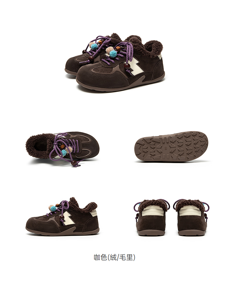 千百度加绒保暖德训鞋女厚底毛毛鞋时尚运动休闲鞋A25656305
