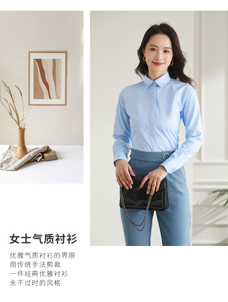 【60长绒棉】罗蒙四季百搭女式长袖衬衫优雅简约纯色基础商务衬衣女