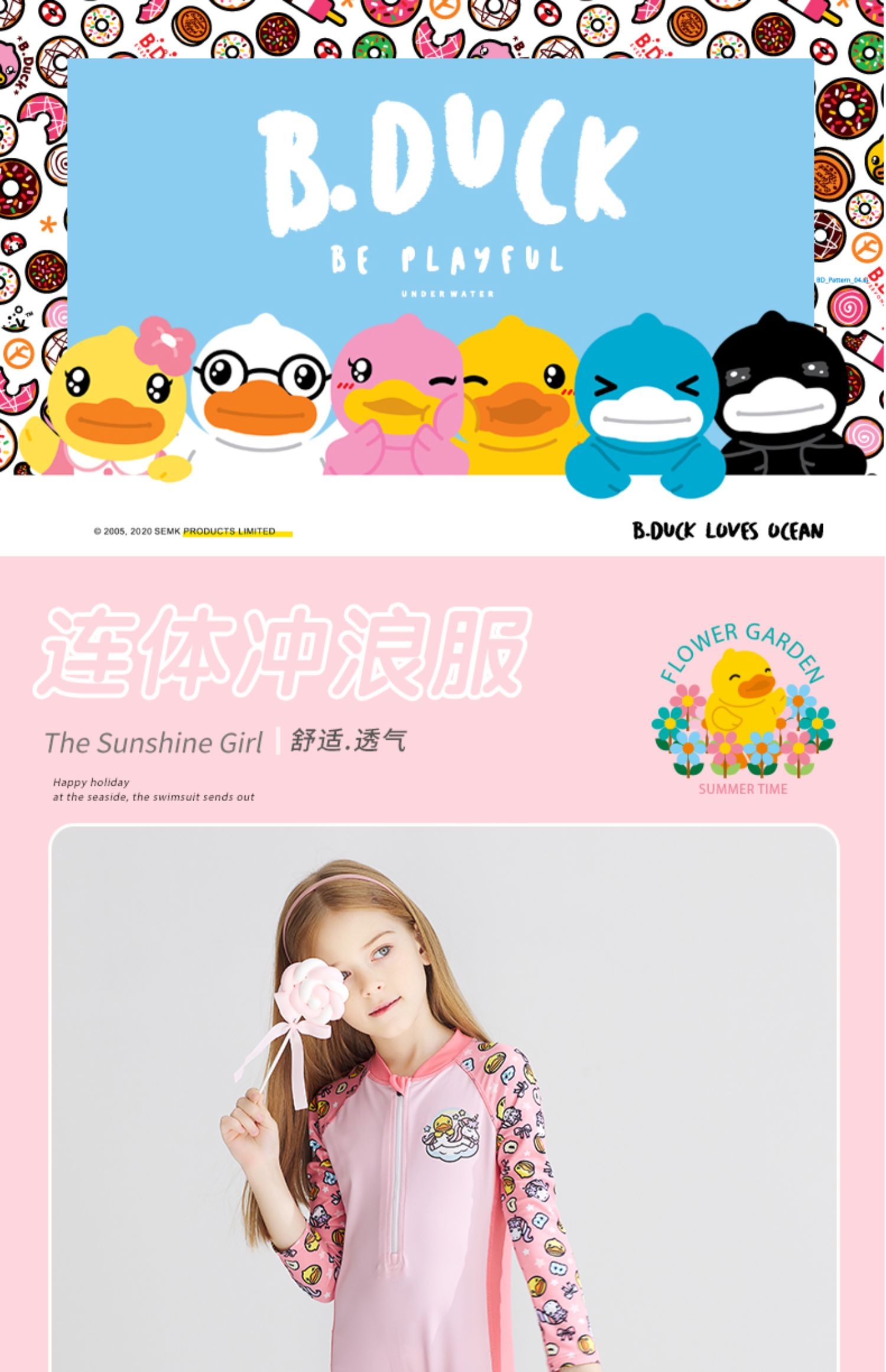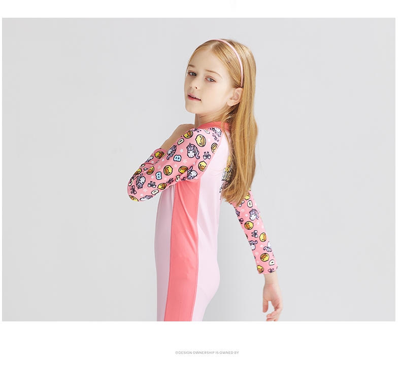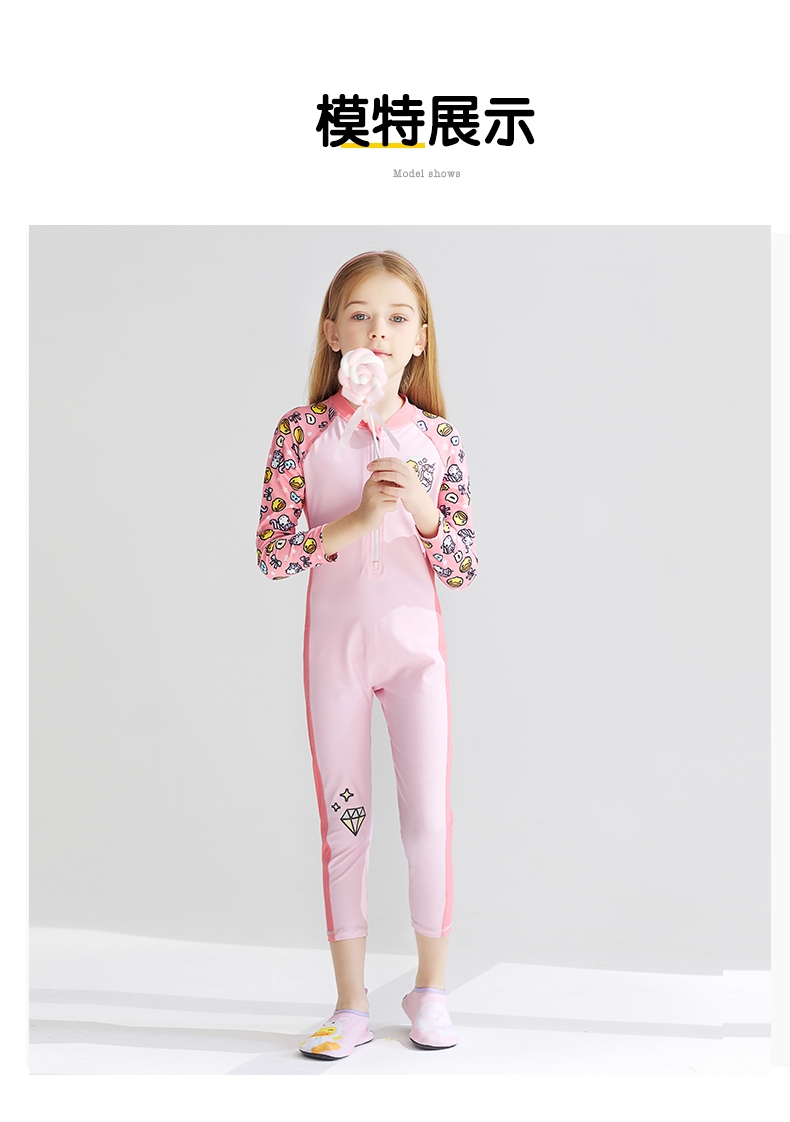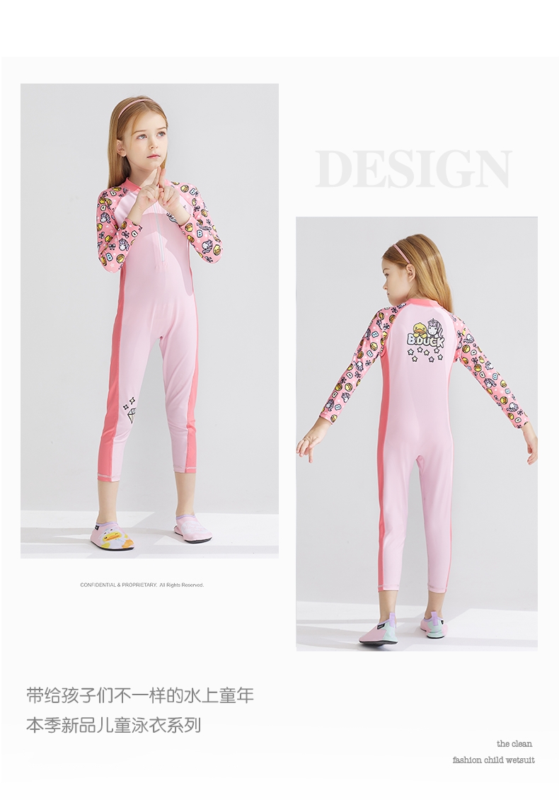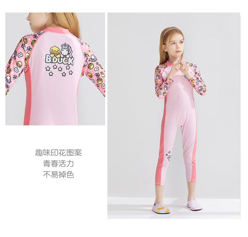 童丨bduck小黄鸭女童泳衣连体长袖长裤洋气中大童儿童泳衣【BK2151005-1】