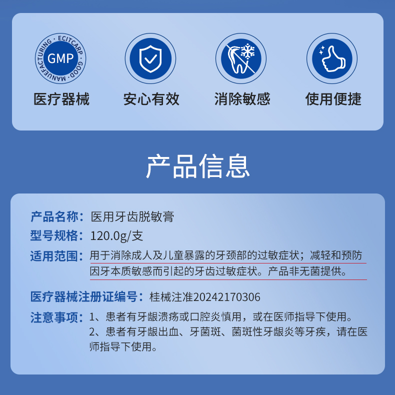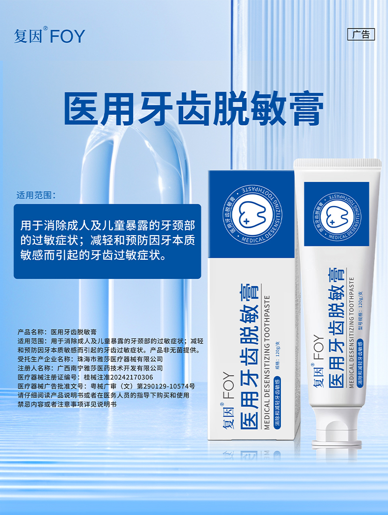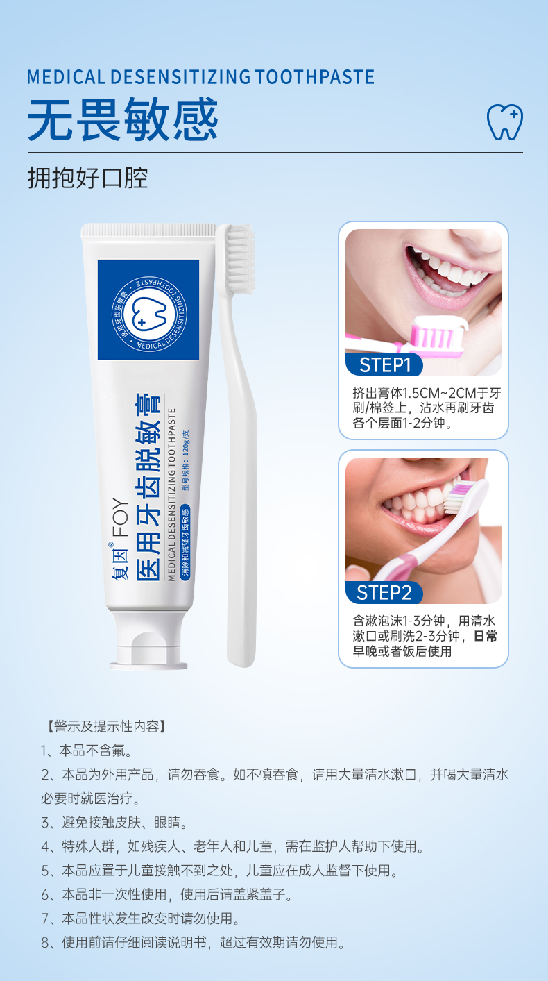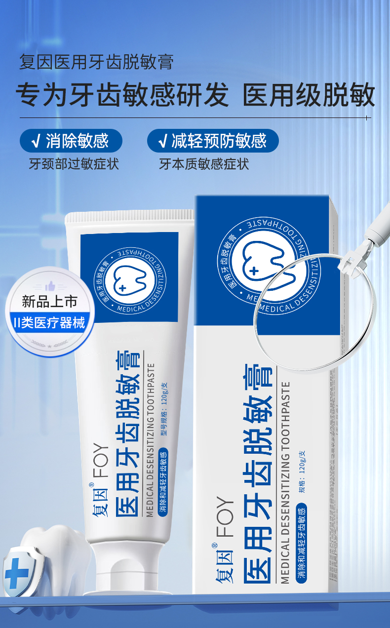 复因医用牙齿脱敏膏牙膏 120g 牙周炎症 牙齿敏感 肿痛出血 减轻预防牙齿敏感过敏症状 男女通用 抗敏固齿