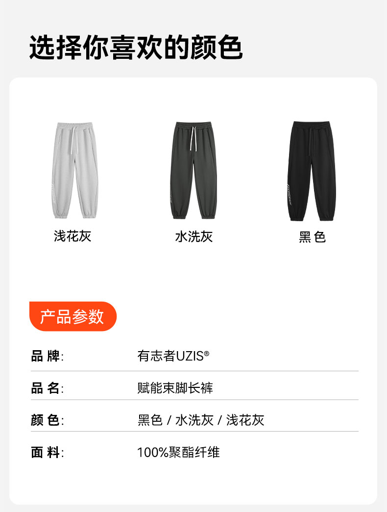 有志者UZIS美式运动长裤男篮球训练健身跑步秋季宽松束脚卫裤赋能