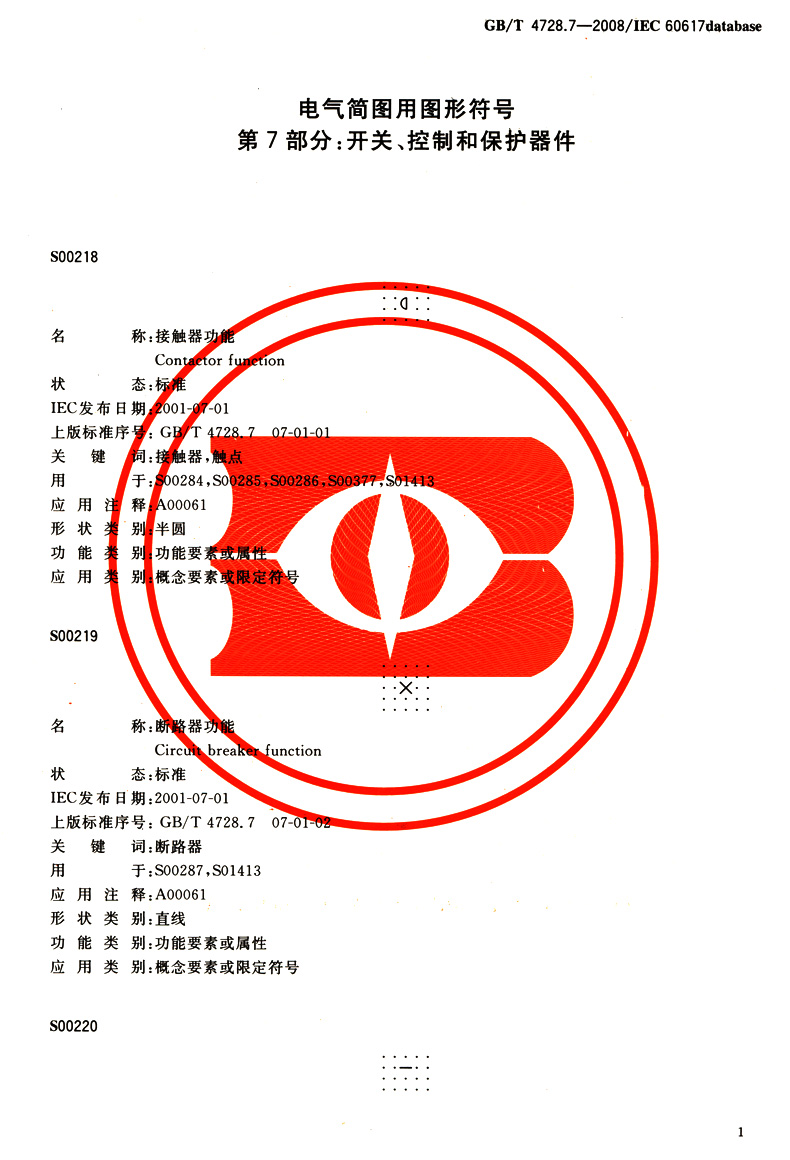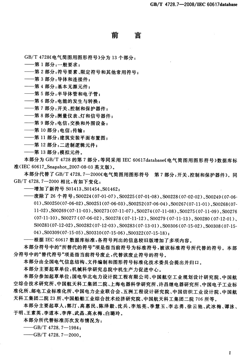 书名:GB/T 4728.7-2008电气简图用图形符号 第7部分:开关、控制和保护器件【2019年供配电考试新增规范】