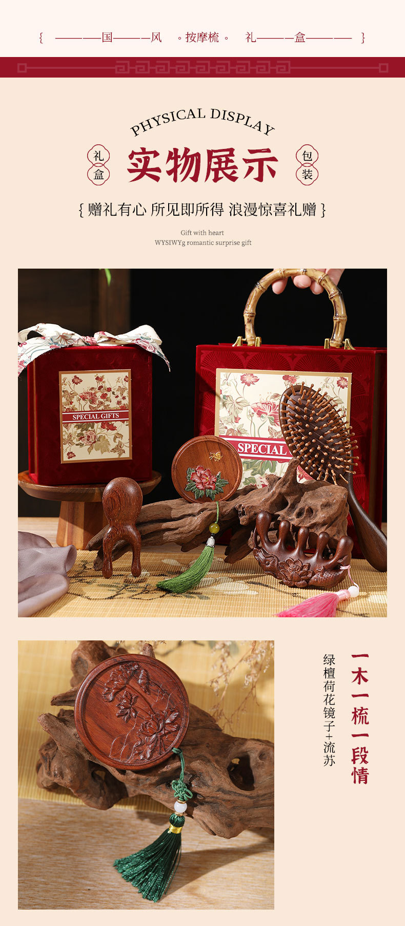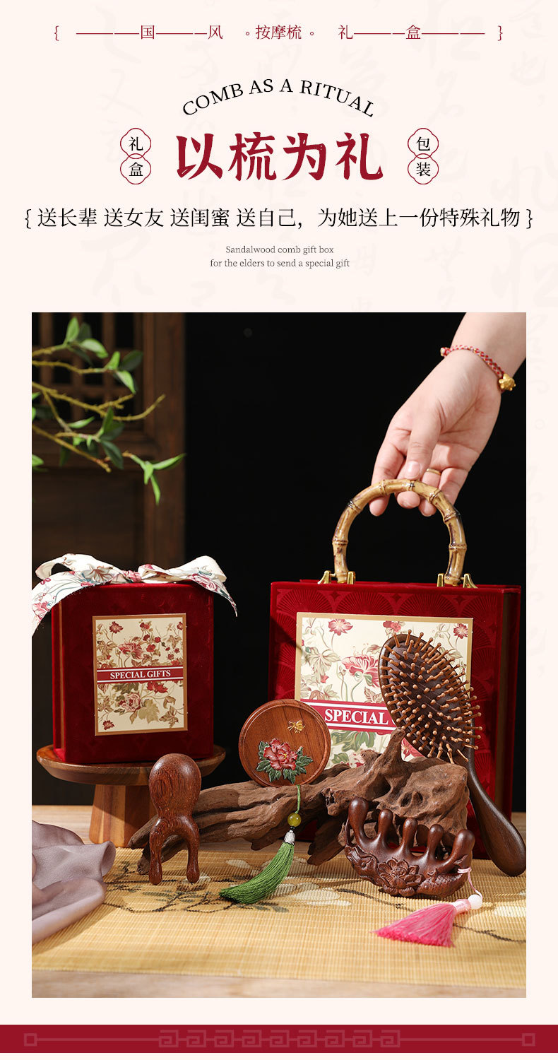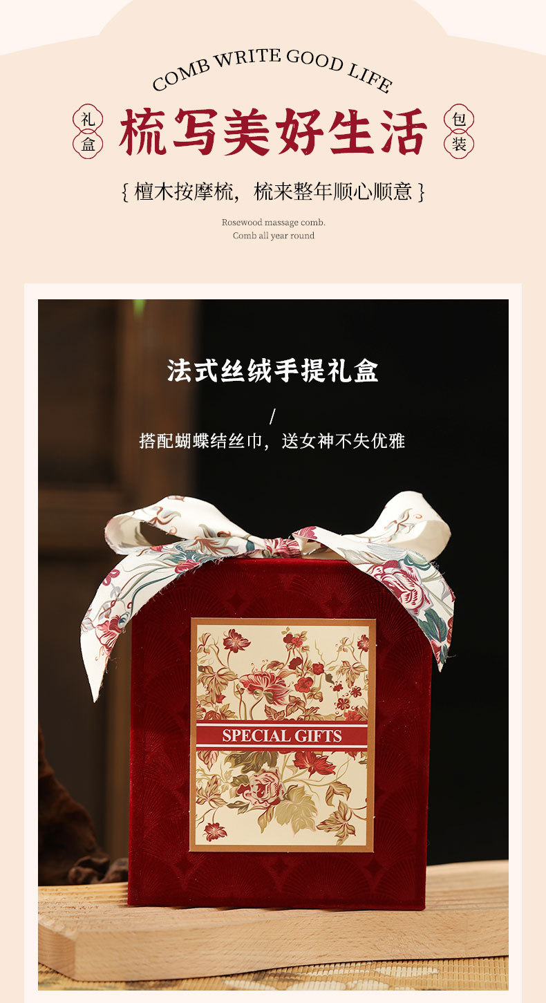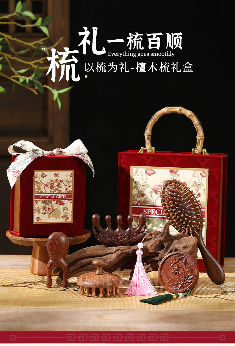 母亲节好礼!【一梳百顺,以梳为礼,檀木梳礼盒】母亲节礼物高级感 送妈妈老婆生日礼物 创意梳子礼盒 实用女士伴手礼-QQ