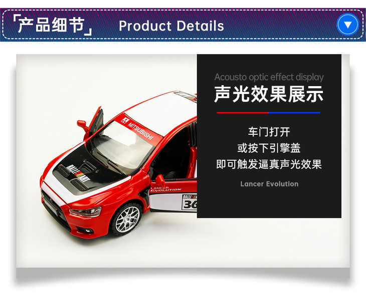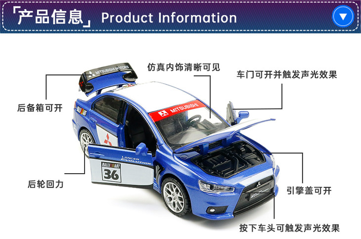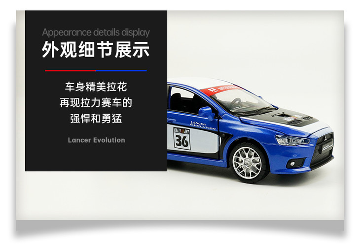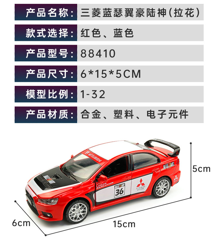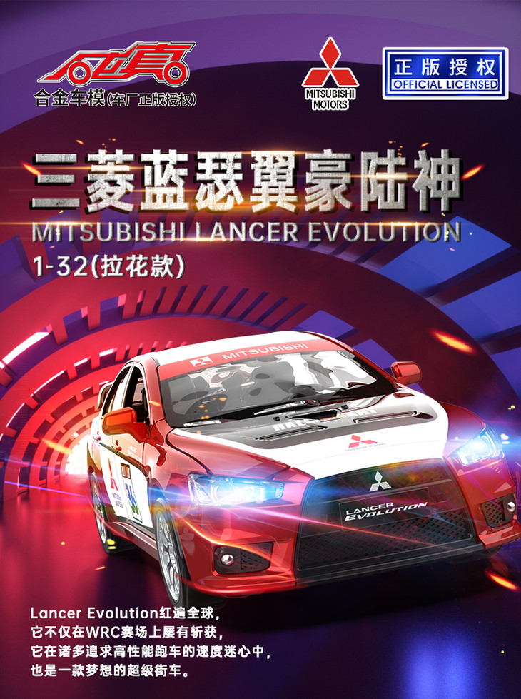【经典系列】1:32三菱蓝瑟翼豪陆神拉花跑车