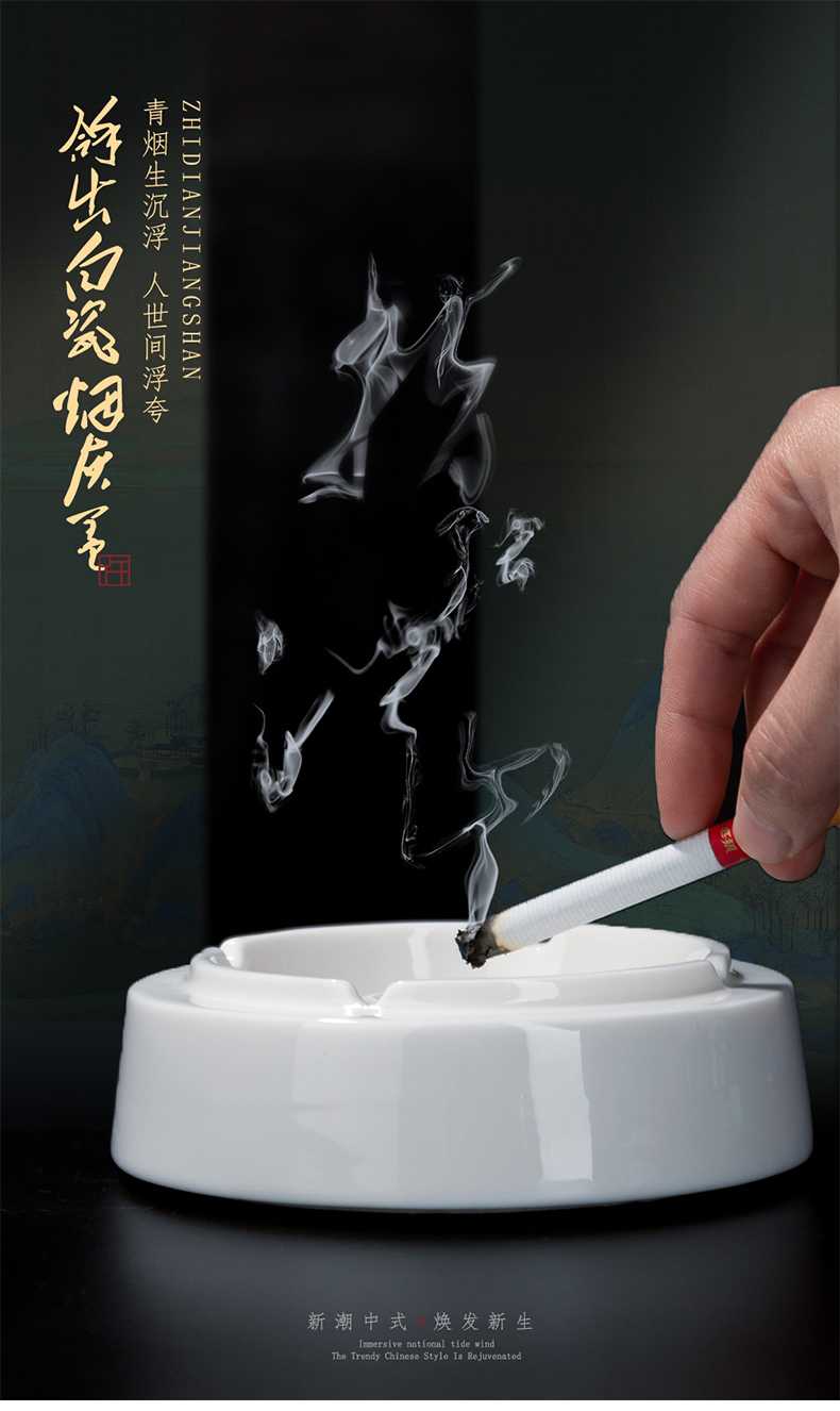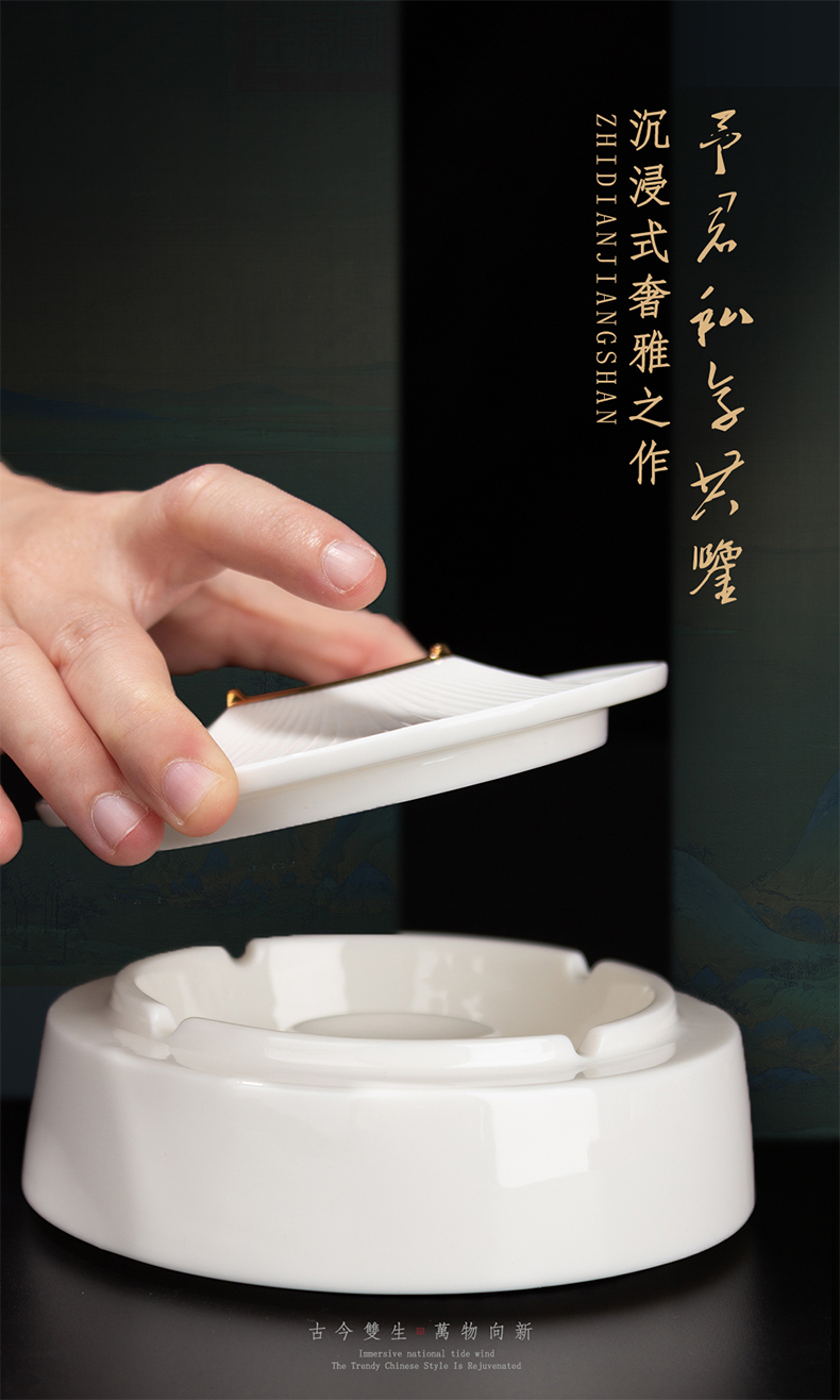 创意国潮烟灰缸高档家用办公室客厅新中式防风带盖烟灰缸