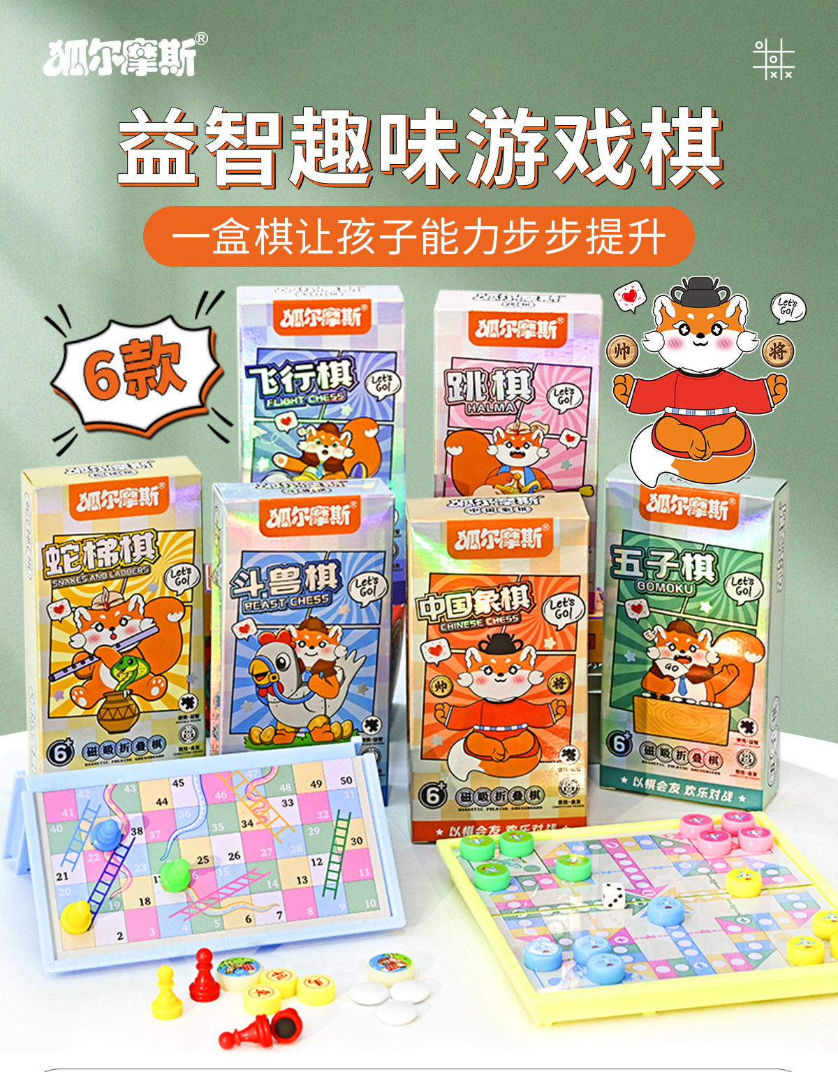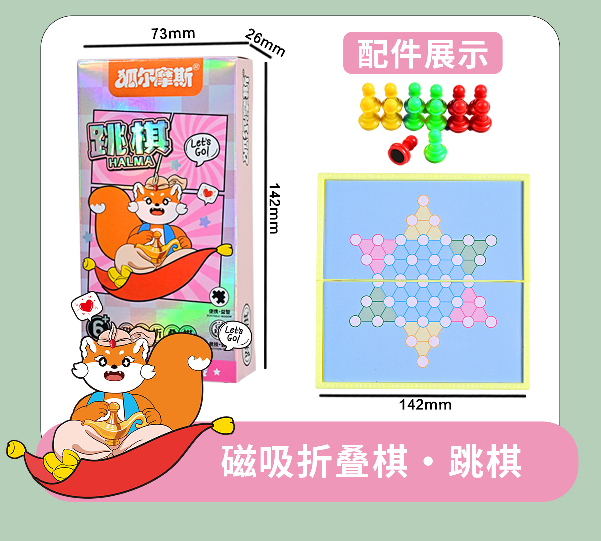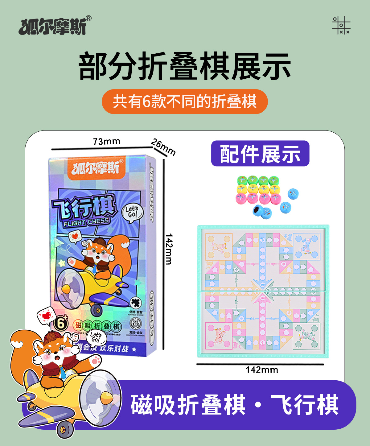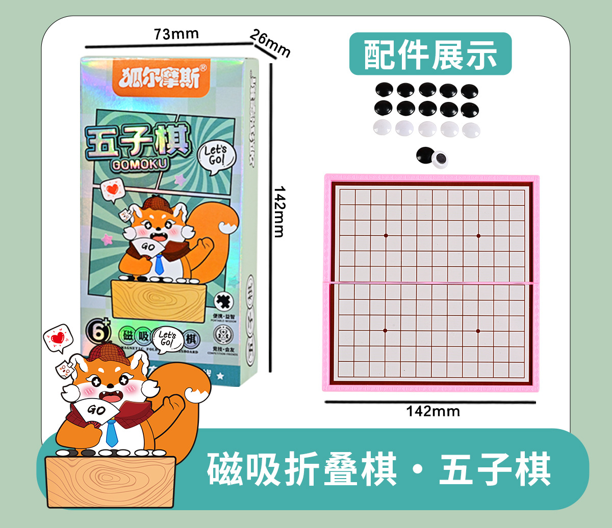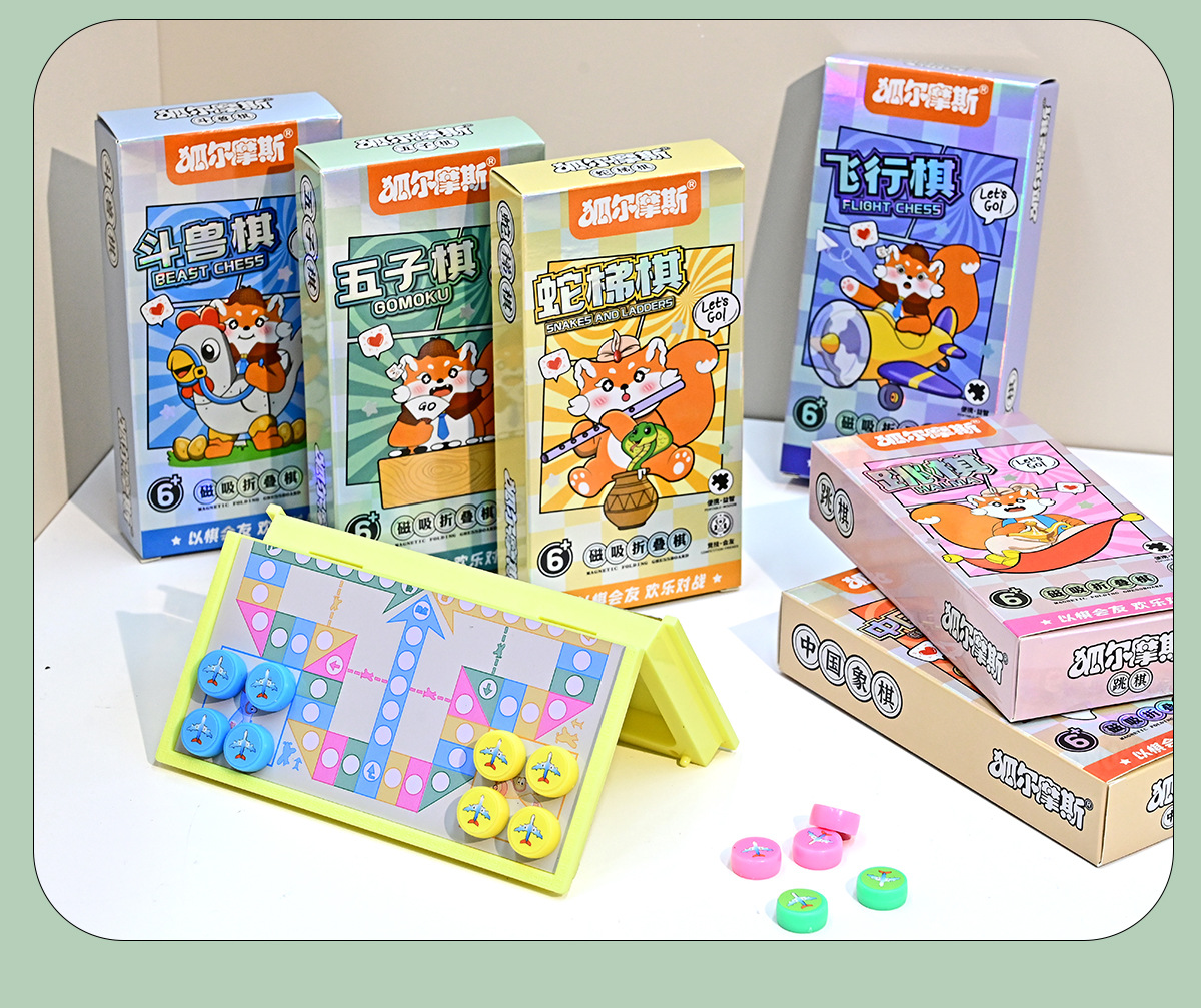 「六款可选!便携设计」磁吸五子棋卡通口袋儿童益智棋折叠磁性围棋飞行棋便携益智棋玩具