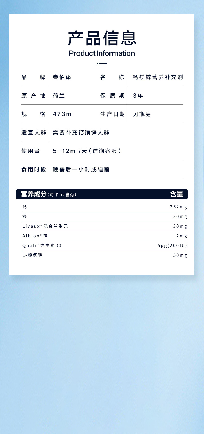 叁佰添成长饮液(钙镁锌)
