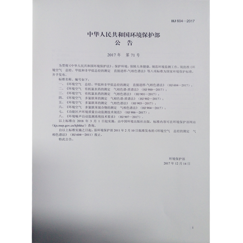 HJ604-2017 环境空气 总烃、甲烷和非甲烷总烃的测定 直接进样-气相色谱法 135111596