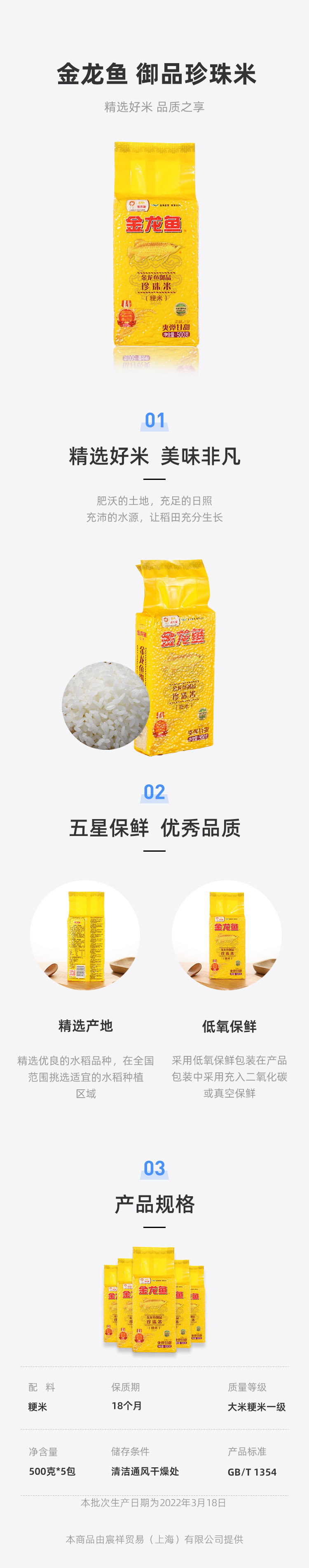 「500g*5包装」金龙鱼御品珍珠米 粮油米面