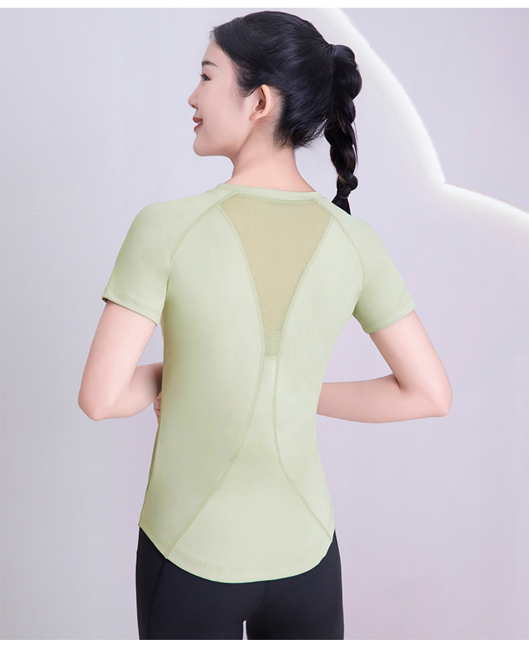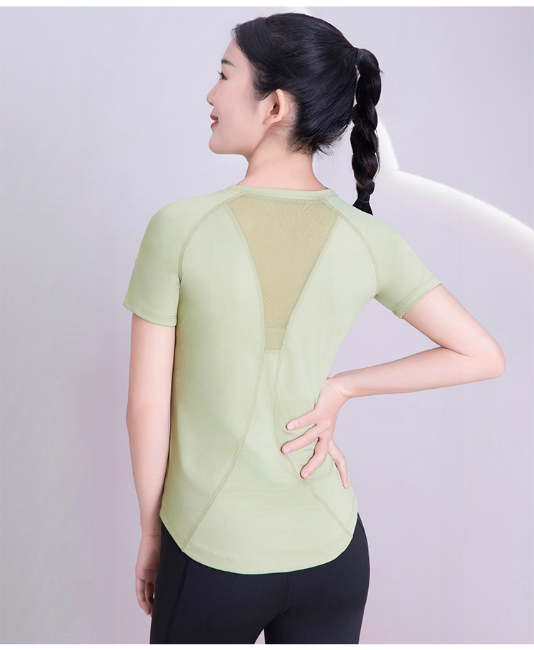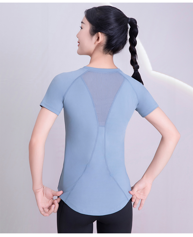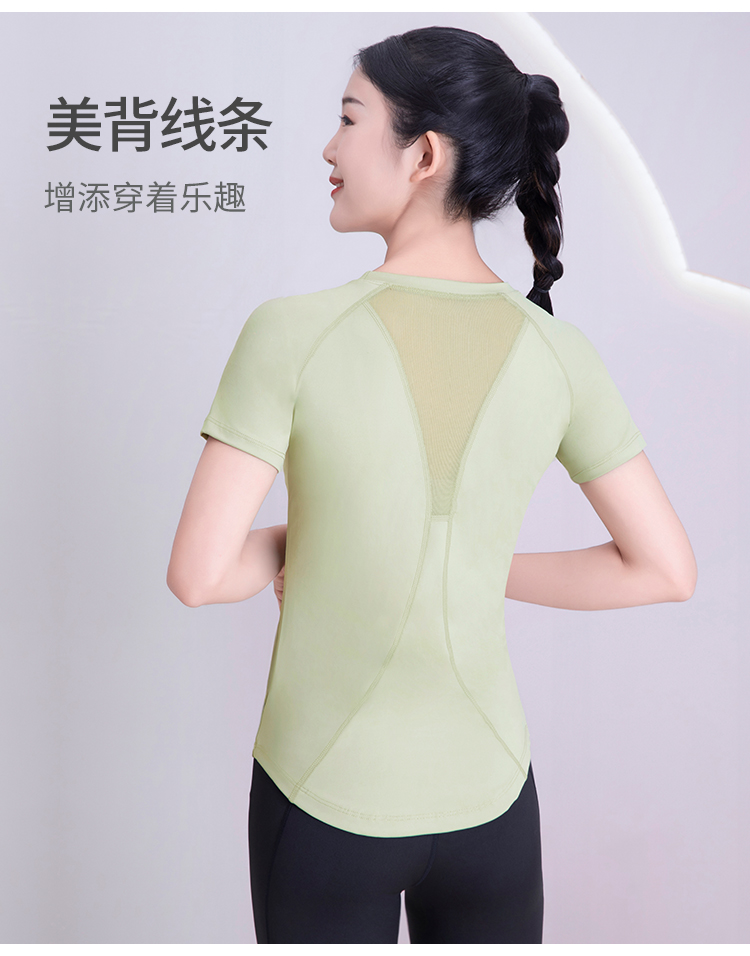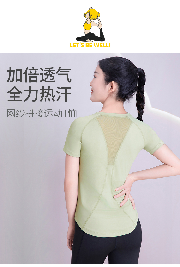 BWELL后背网纱拼接修身运动短袖T恤BWY7592