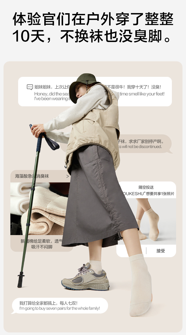 【急速消臭】有棵树棉质女士中筒袜7双装-S0011