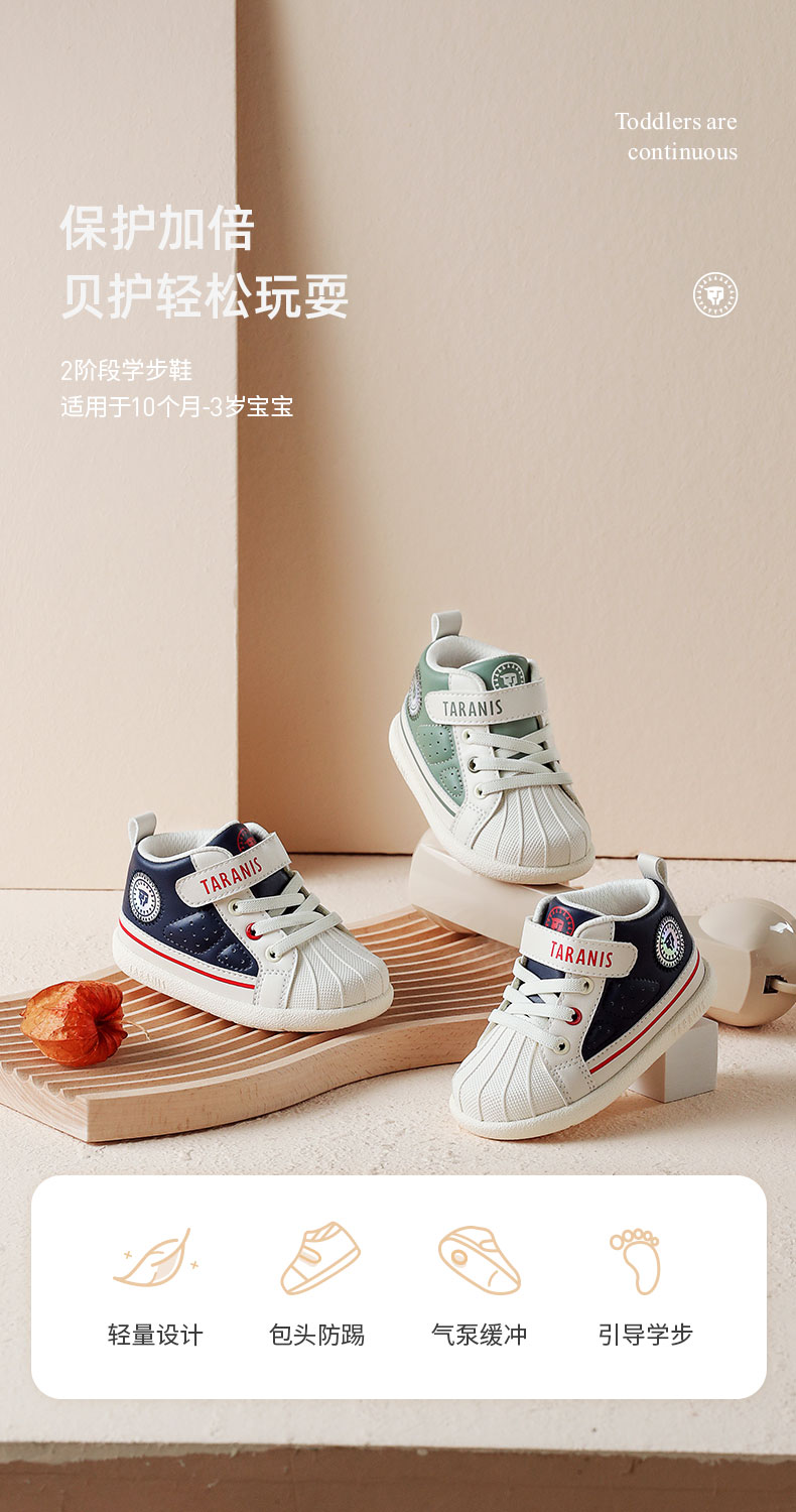 泰兰尼斯秋季婴童段经典贝壳头包头防踢激光冲孔透气宝宝学步鞋T01B2C2306