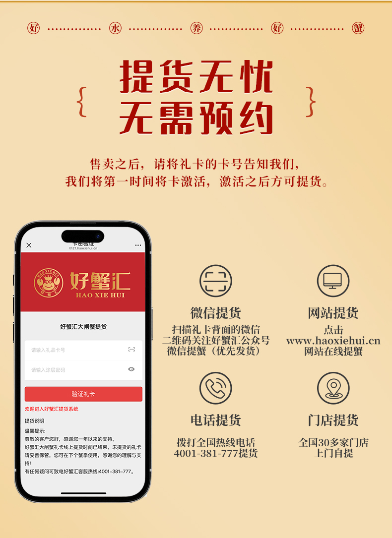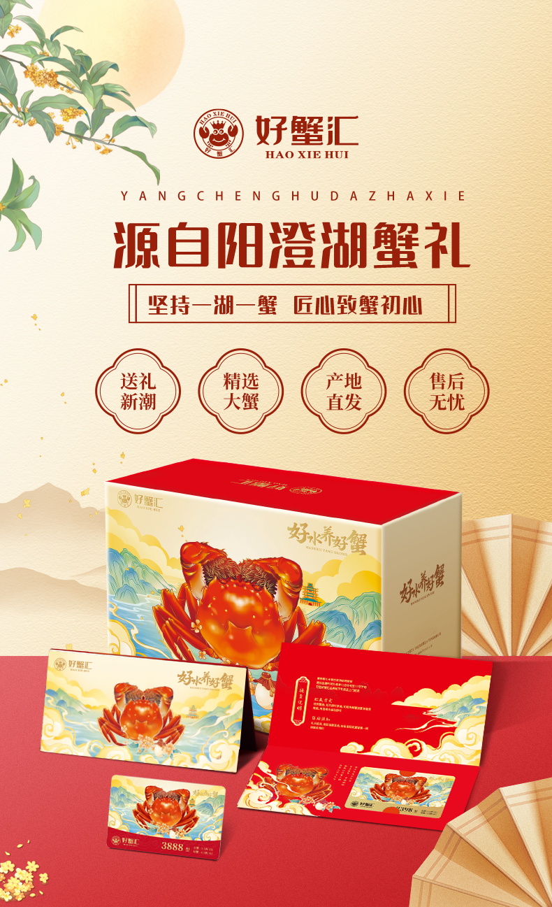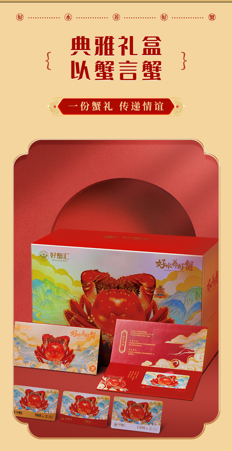 好蟹汇·阳澄湖大闸蟹卡1888型雄蟹4.5两/雌蟹3两五对装【盛元新生活·礼卡】