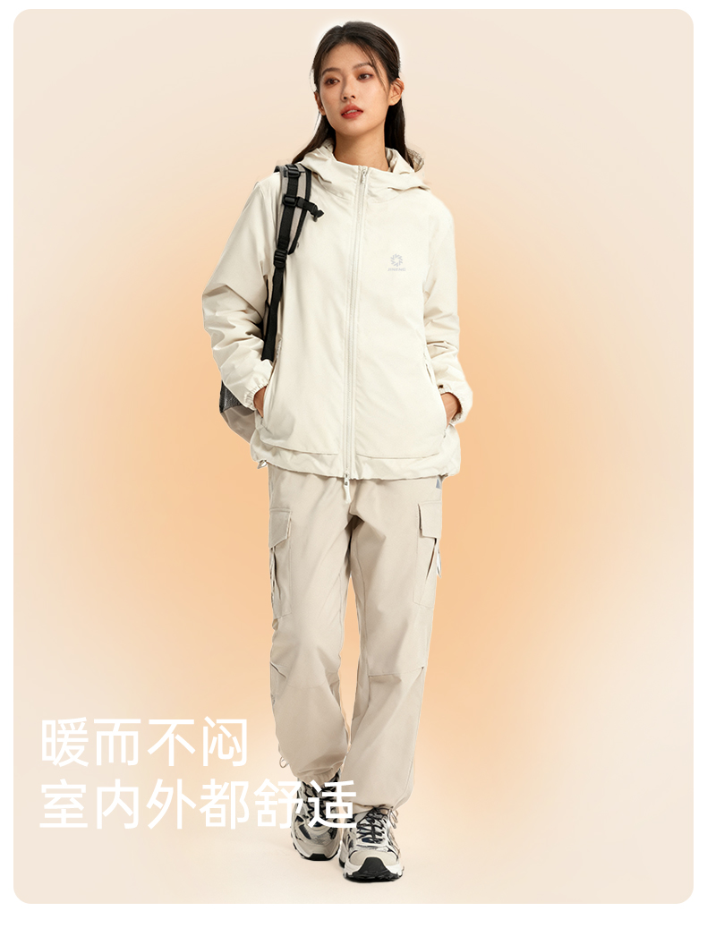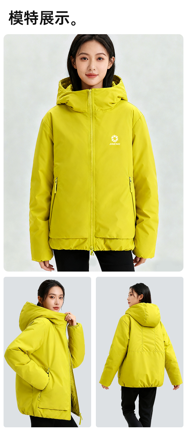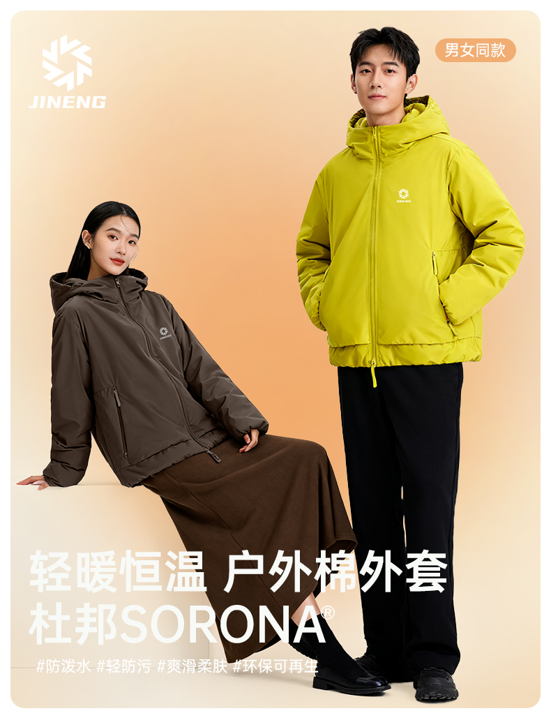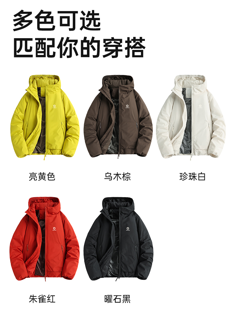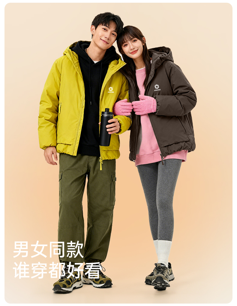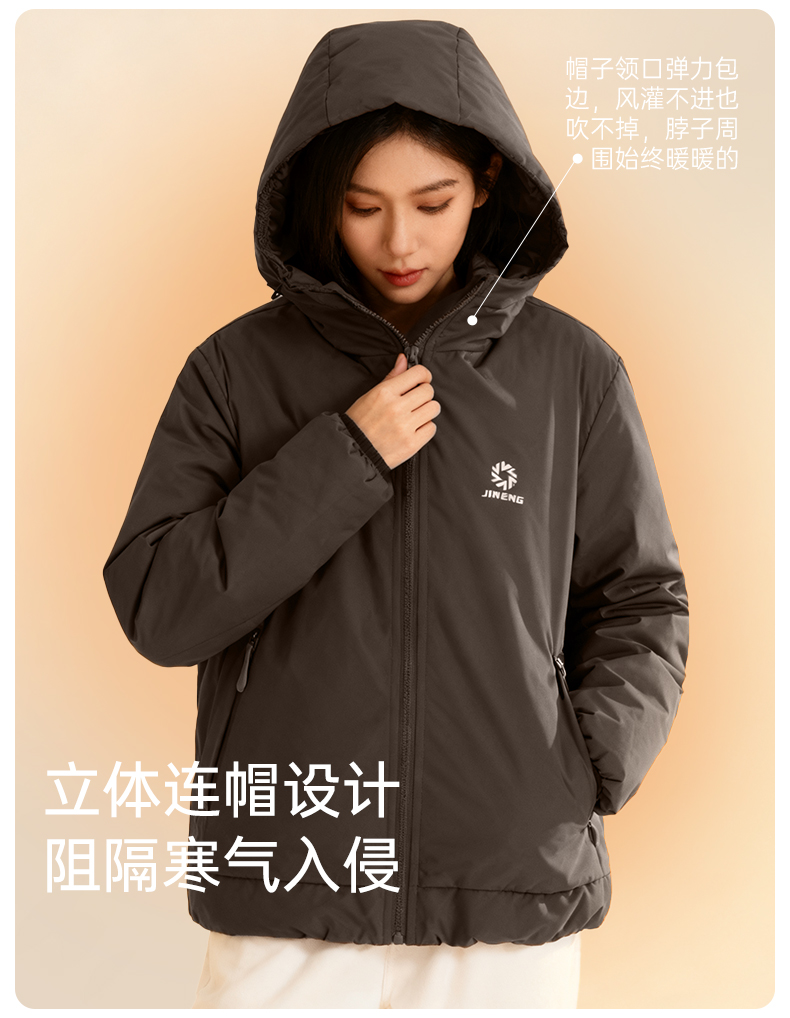 【积能】秋冬新款运动户外下摆可收缩松紧女保暖棉服男连帽棉衣纯色